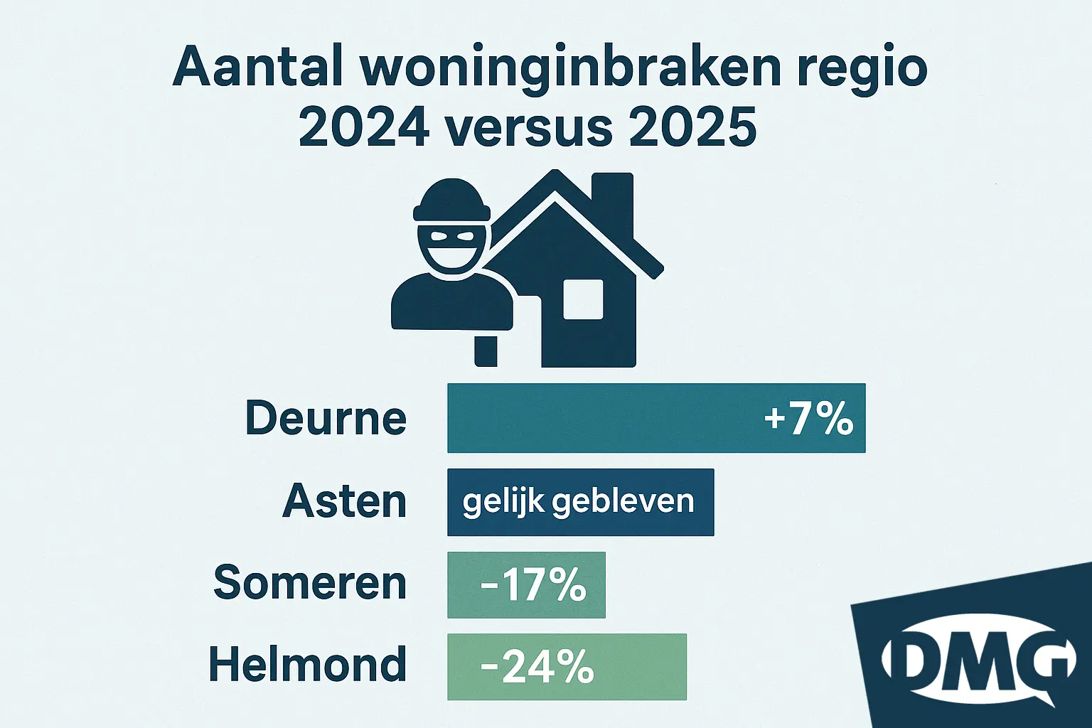 De cijfers verschillen fors per gemeente. Alleen al in onze regio zijn de verschillen groot. Zo nam het aantal inbraken in buurgemeente Helmond vorig jaar bijvoorbeeld af met maar liefst 24 procent. In gemeente Someren daalde het aantal inbraken met 17 procent en in Asten bleef het aantal gelijk.
