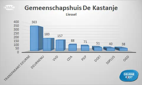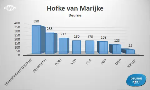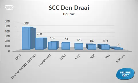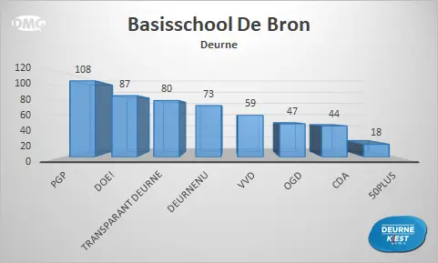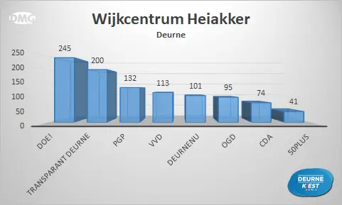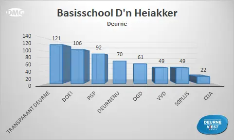 Van de zestien plekken waar mensen in onze gemeente naar de stembussen konden gaan, zijn er zeven locaties waar Transparant Deurne als eerste eindigde. Op vijf plaatsen stond DOE! bovenaan en DeurneNU kreeg de meeste stemmen in Neerkant en Helenaveen. OGD werd de grootste in Zeilberg en de VVD in Vlierden. Bij het stembureau in Basisschool De Bron eindigde PGP op de eerste plek.
