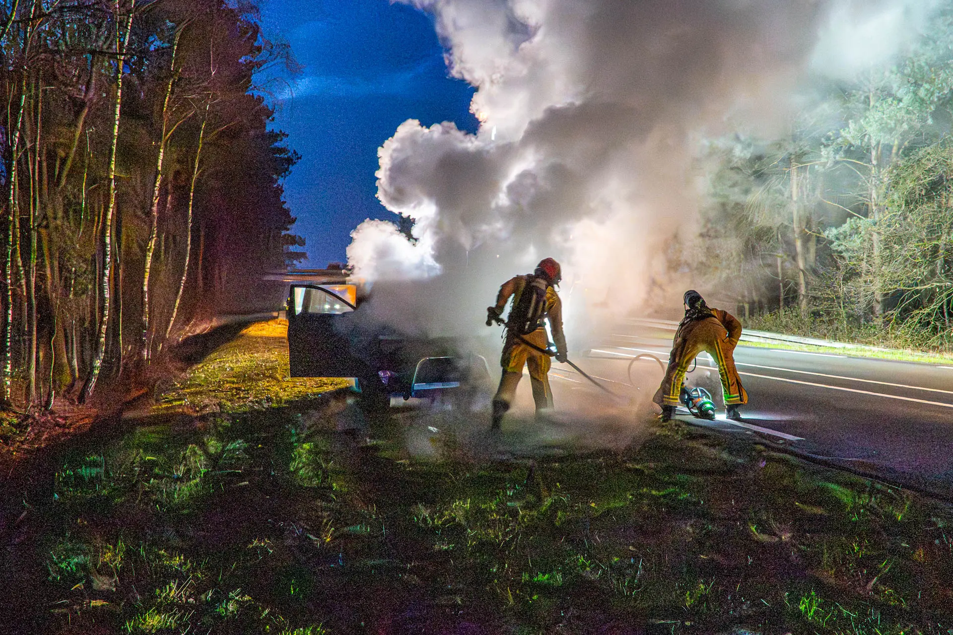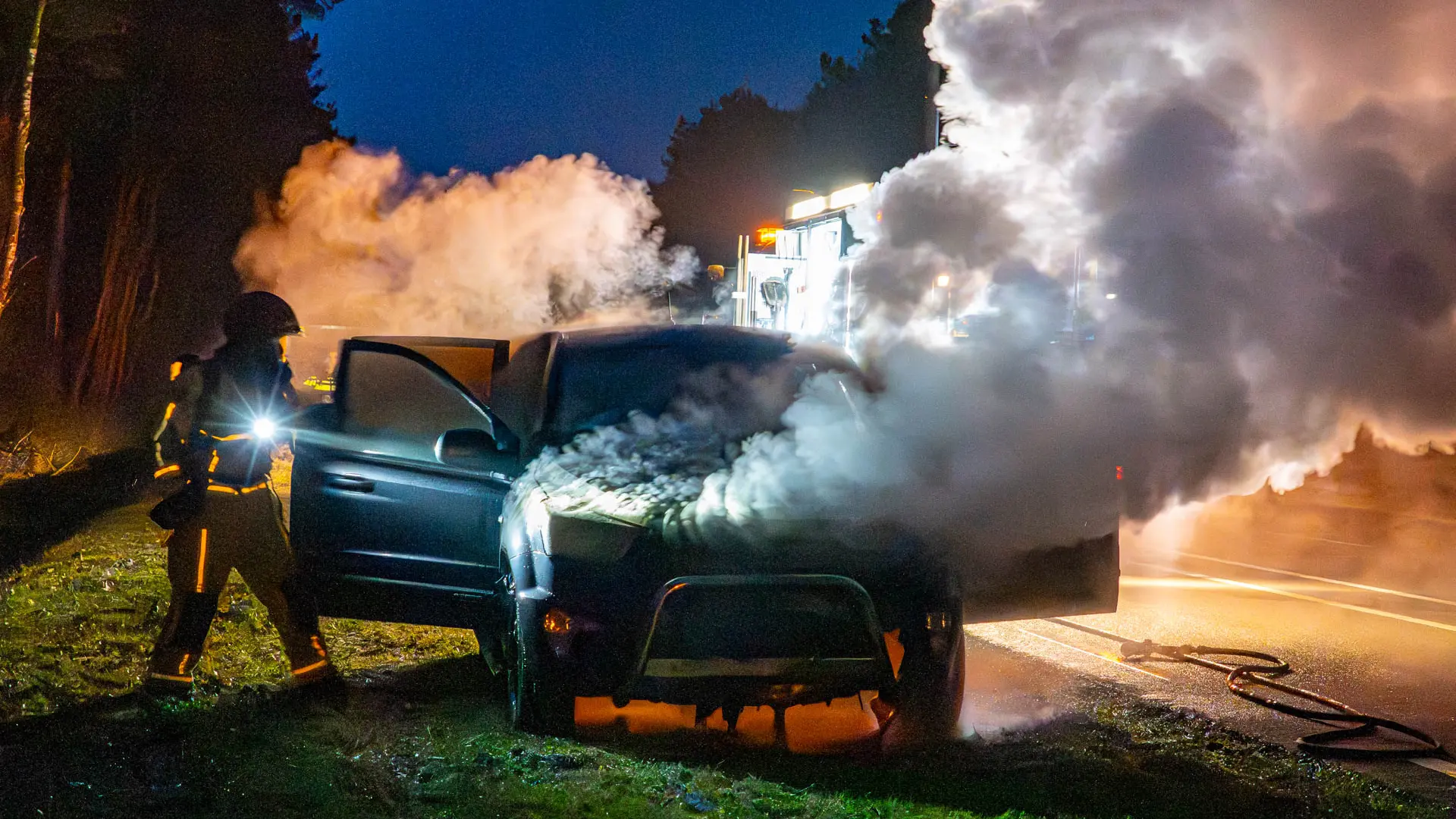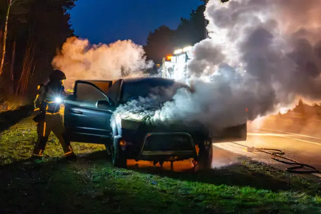 De auto vatte vlam tijdens het rijden. De bestuurder kon de SUV nog wel in de berm zetten en het voertuig op tijd verlaten. Er raakte niemand gewond. De eigenaar had de auto pas drie maanden in zijn bezit.