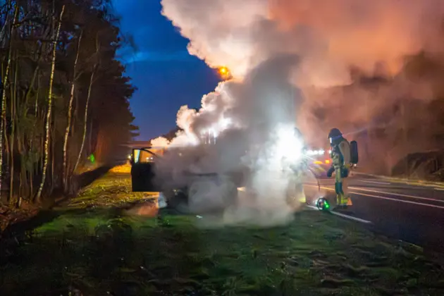 Auto brandt volledig uit op N279 ter hoogte van Vlierden; SUV vat vlam tijdens het rijden