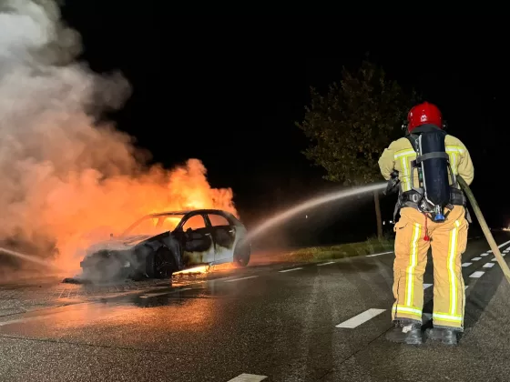 De bestuurder en de passagier konden op tijd uit de auto komen en raakten niet gewond. Doordat de brandstoftank van de wagen lek raakte in de vlammenzee is door de brandweer gewisseld van blusmethode. Eerst werd met water gewerkt en daarna werd overgeschakeld op gebruik van schuim. De auto wordt door een bergingsdienst weggesleept.