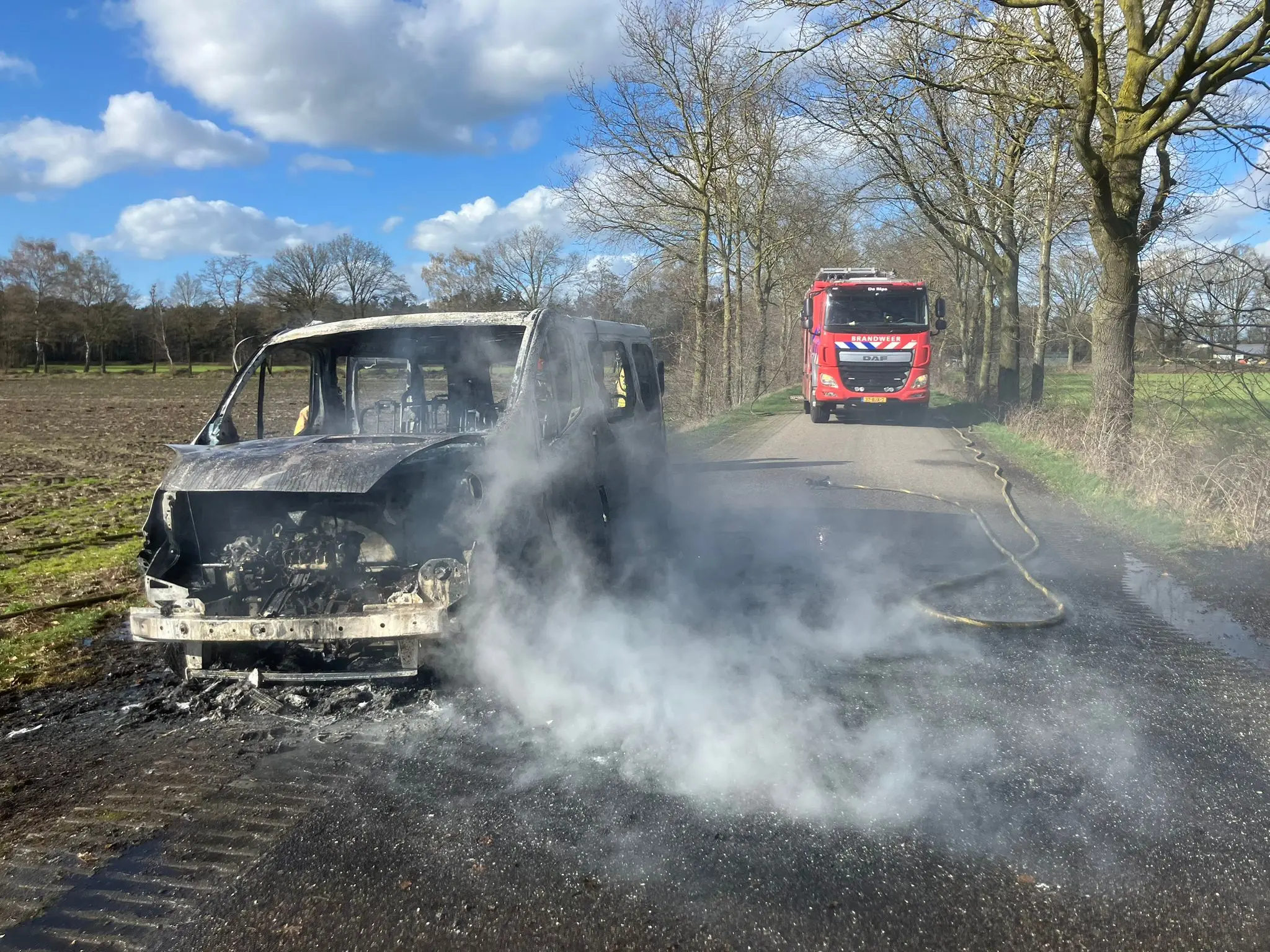 De brandweer is maandagmiddag rond 15.15 uur gealarmeerd in verband met een autobrand op de Hoefweg in Milheeze. Ter plaatse bleek dat het voertuig in lichter laaie stond. Hoewel de brandweer het vuur snel onder controle had en kon blussen, moet de bestelbus als verloren worden beschouwd.