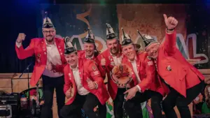 Prins Rob d’n Twidde van De Peelpluimen liep al enige tijd rond met het idee voor een lied over de mentaliteit en saamhorigheid in Helenaveen. Samen met Ruud (ex-Prins 2025) heeft hij dit verwoord in een tekst die volk en vaderland in beweging brengt en alle allure heeft van een echt Peels volkslied. Voeg daarbij de nachtegalen Martien en Antonio toe en het heeft alle ingrediënten van een lokale wereld-act. Bij het 66-jarig jubileumfeest van CV De Peelpluimen vond de vuurdoop plaats voor ‘Het geluk van Helenaveen’ en sindsdien stromen de boekingen binnen. Gelukkig konden de heren nog een gaatje vinden voor het DCC in Liessel en kan het publiek daar vrijdagavond ook meegenieten.