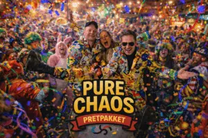 Mark en Mandy zijn dit jaar het Prinsenpaar van Carnavalsvereniging De Hellevègers. Samen met Jan vormen ze Pure Chaos en de naam zegt volgens hen eigenlijk al genoeg. Afgelopen jaar ontstond het idee om deel te nemen aan de liedjescompetitie van DMG en het Deurnes Concours Carnavalesk. Mandy wilde een nummer schrijven over een noodpakket, maar Jan zag er een pretpakket in. En Mark? Die moest maar gewoon mee gaan zingen. Alleen kreeg hij uiteindelijk nauwelijks tekst. Letterlijk pure chaos dus, maar wel met een flinke dosis humor, zelfspot en enthousiasme.