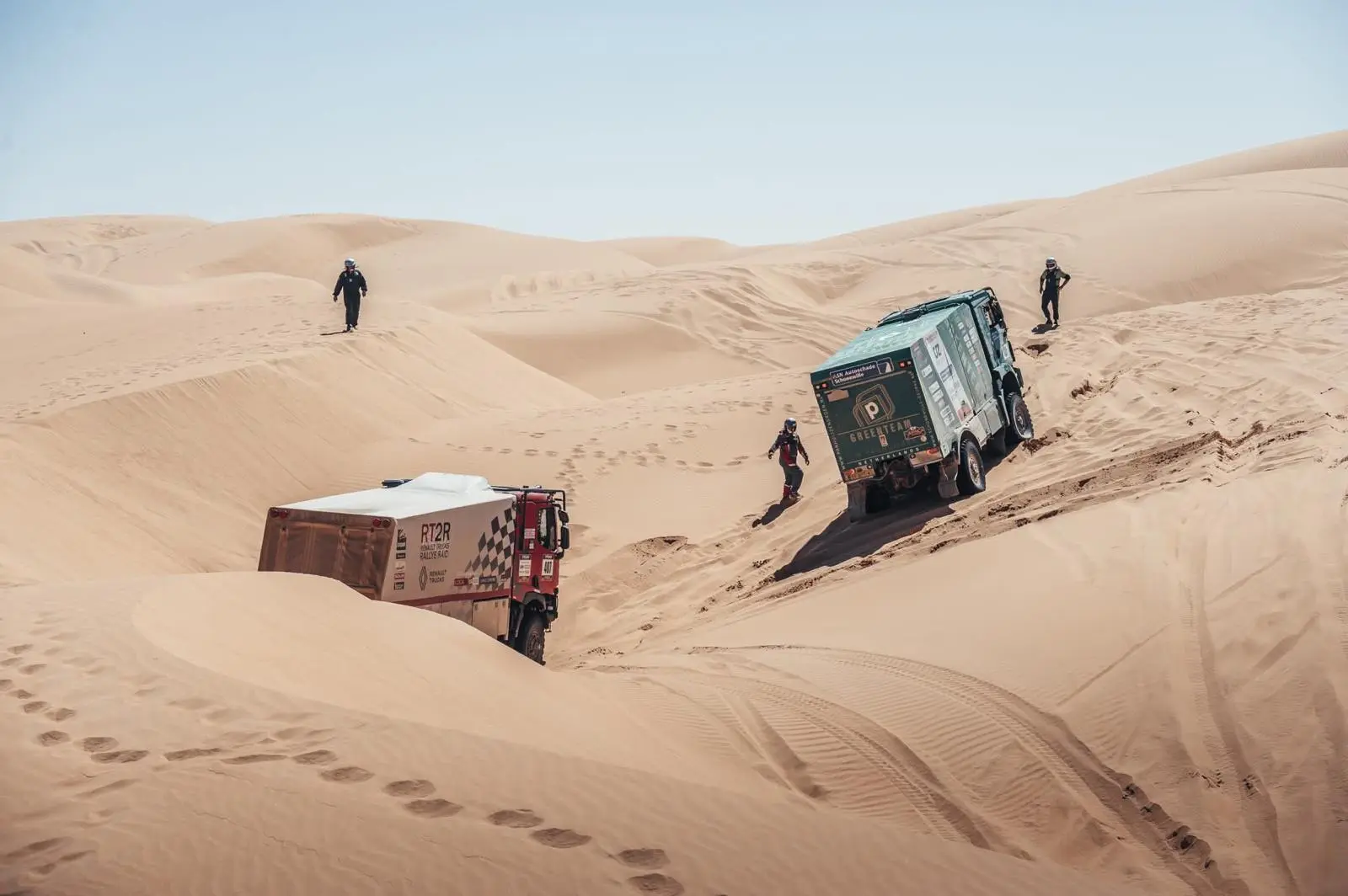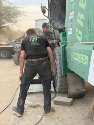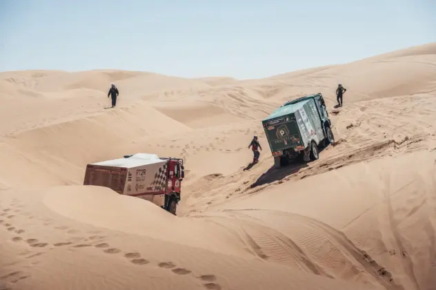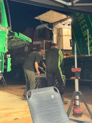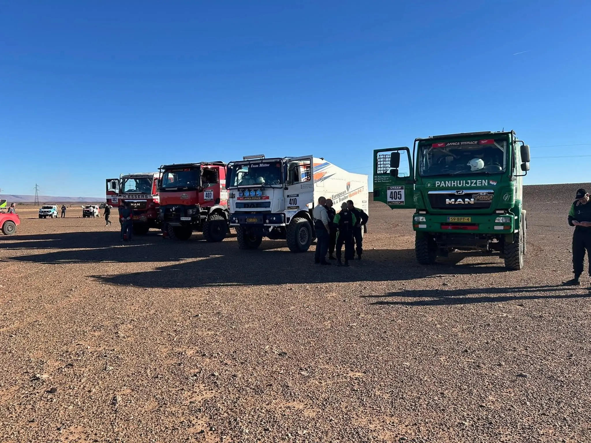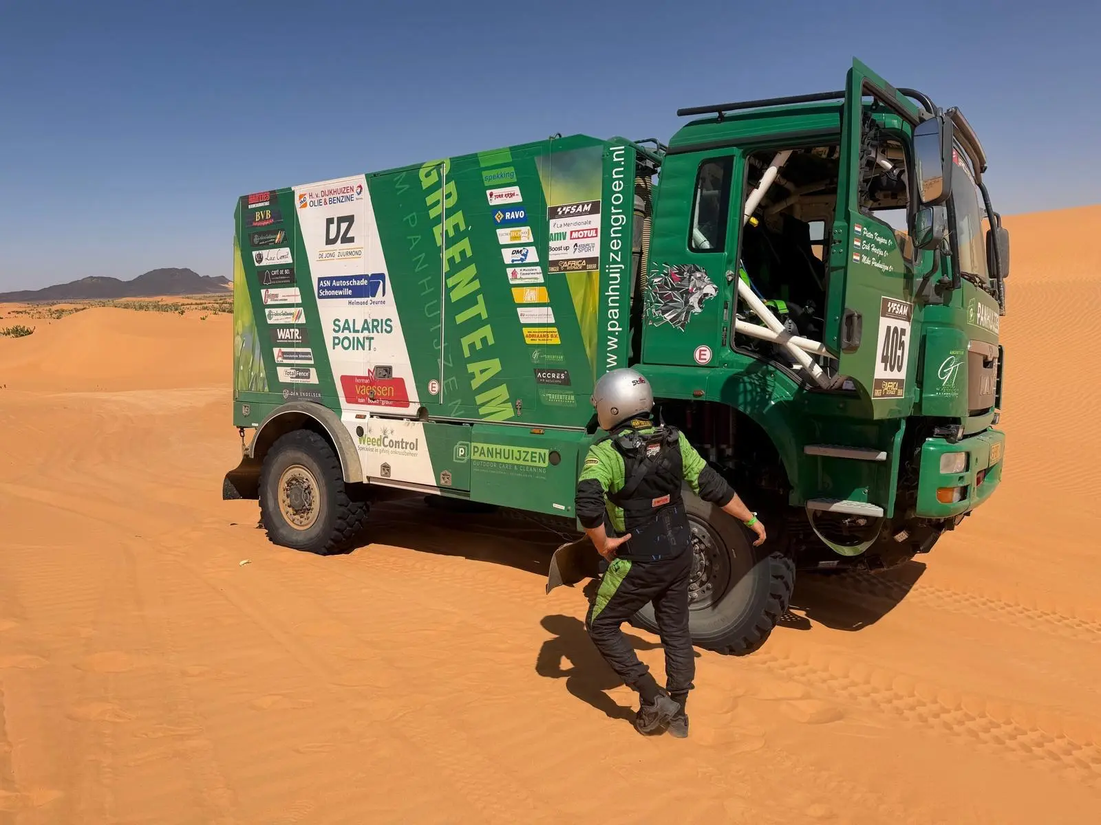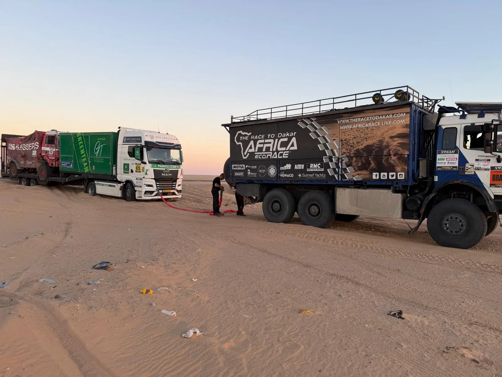 Daarbij heeft het Greenteam ook menig keer anderen moeten helpen die vast kwamen te zitten. Het ruige terrein zorgde ook voor de nodige lekke banden, maar daar waren Panhuijzen, Kuypers en Hartjes met hun team op voorbereid. De MAN-truck hield het goed uit tijdens de zeventiende editie van de Africa Eco Race en dat betekende weer wat minder werk voor de monteurs.