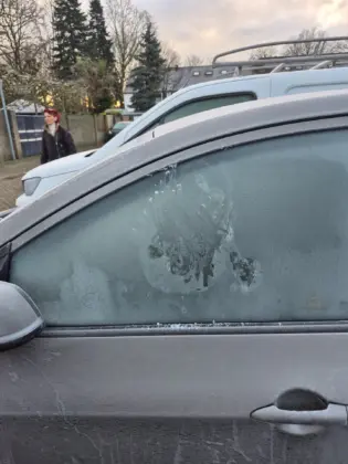 Bij zeker twaalf andere auto’s werd het ijs op de ruiten weggekrast om erin te kunnen kijken of er zich waardevolle spullen in bevonden. Deze voertuigen lieten de dieven uiteindelijk ongemoeid.