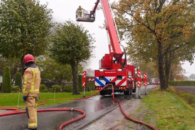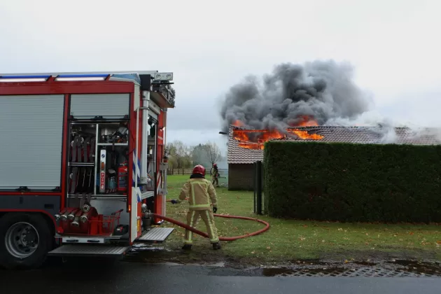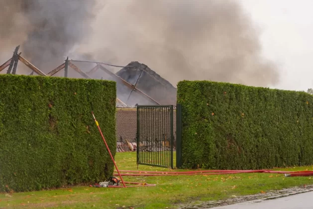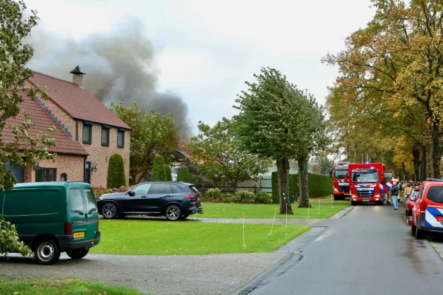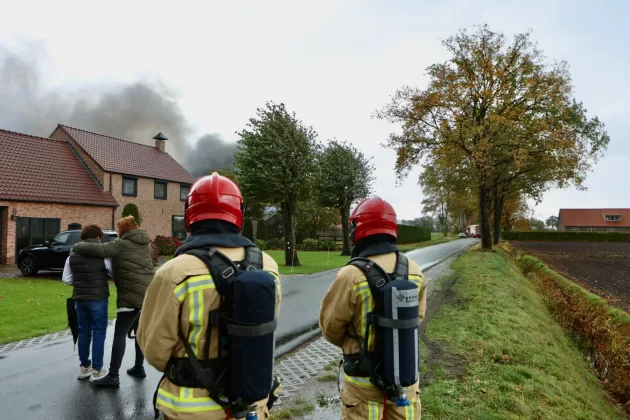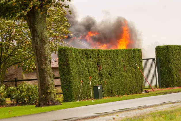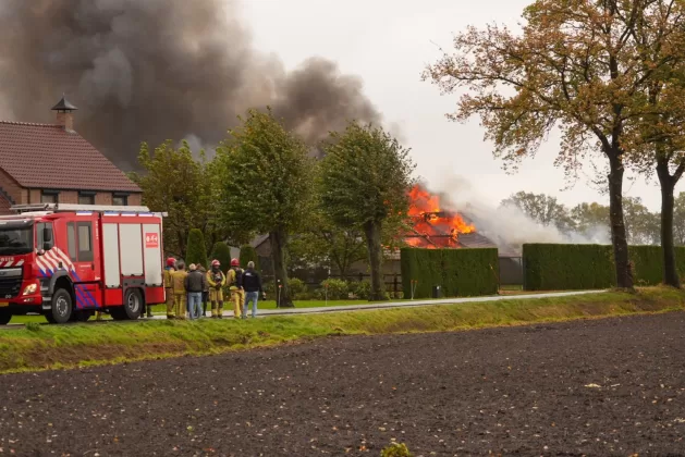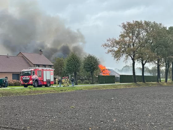 Explosiegevaar bij uitslaande brand in stal met gasflessen aan Lupinenweg tussen Deurne en Liessel