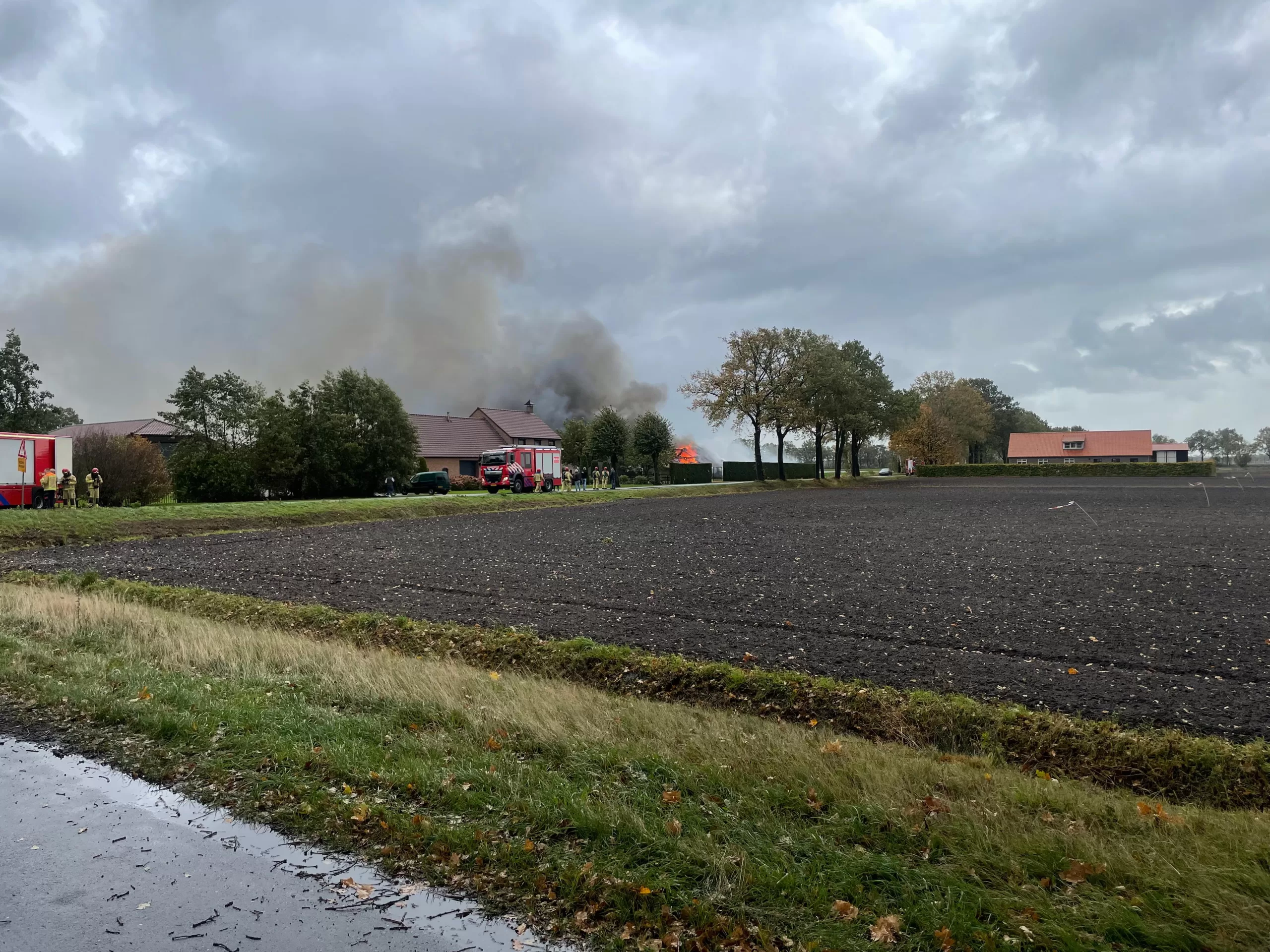 Explosiegevaar bij uitslaande brand in stal met gasflessen aan Lupinenweg tussen Deurne en Liessel