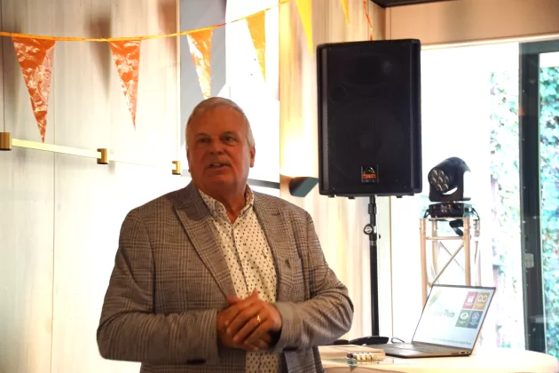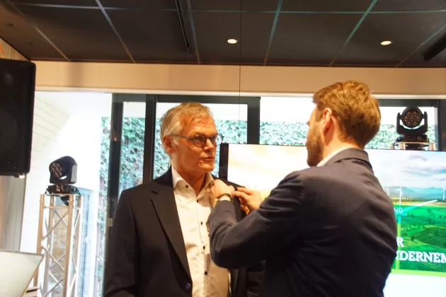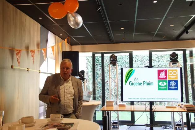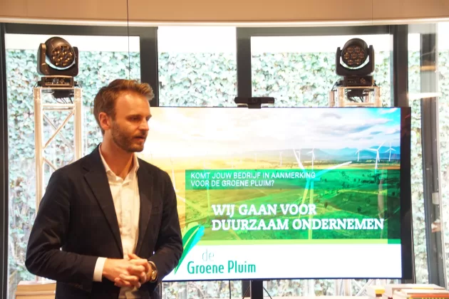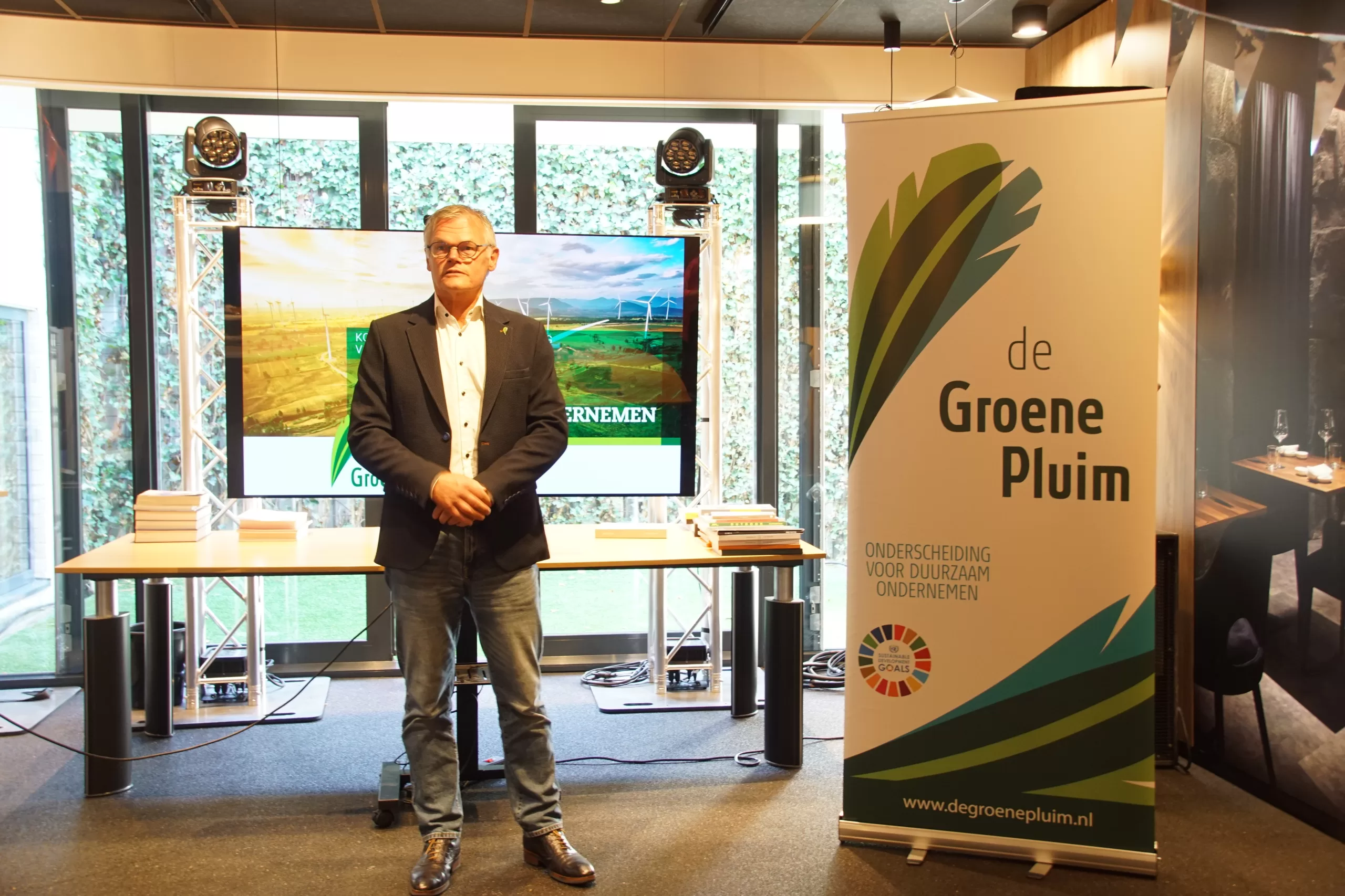 Wethouder Tom Oomen van financiën, economie, duurzaamheid en vastgoed, reikte de Groen Pluim uit aan general manager Maurice Arons van Lixero. Het bedrijf aan de Hendrik Mesdagstraat is gespecialiseerd in verlichtingsoplossingen.