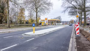 Ook is de weg iets breder geworden om plaats te bieden aan de verhoogde middengeleider. “Dat is een verhoogde strook in het midden van de weg, waar je even kunt wachten voordat je verder oversteekt”, aldus de gemeente. Die laat weten dat de werkzaamheden deze week verder worden afgerond. Hierbij wordt het paadje langs de Posthoek aangepast ,zodat het straks rechtstreeks naar de oversteek leidt.