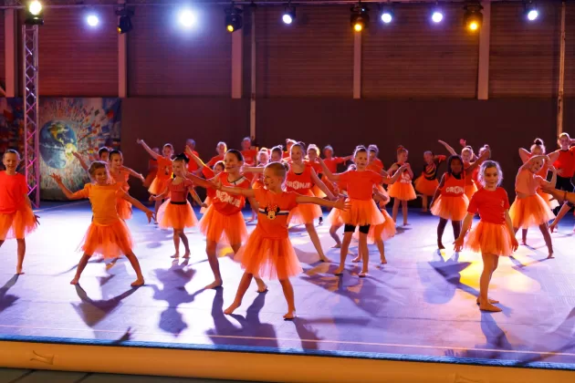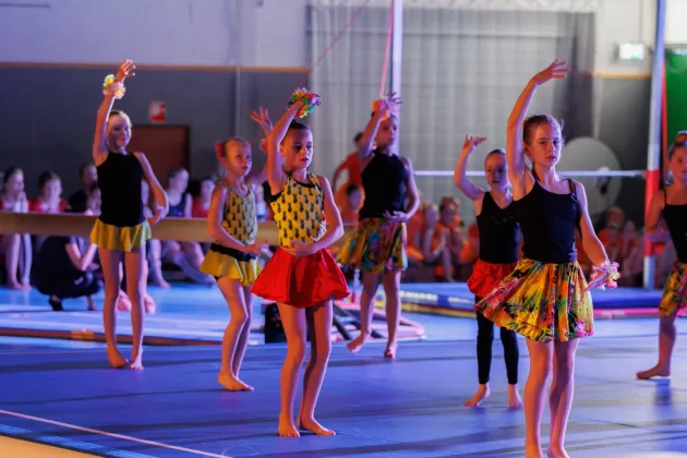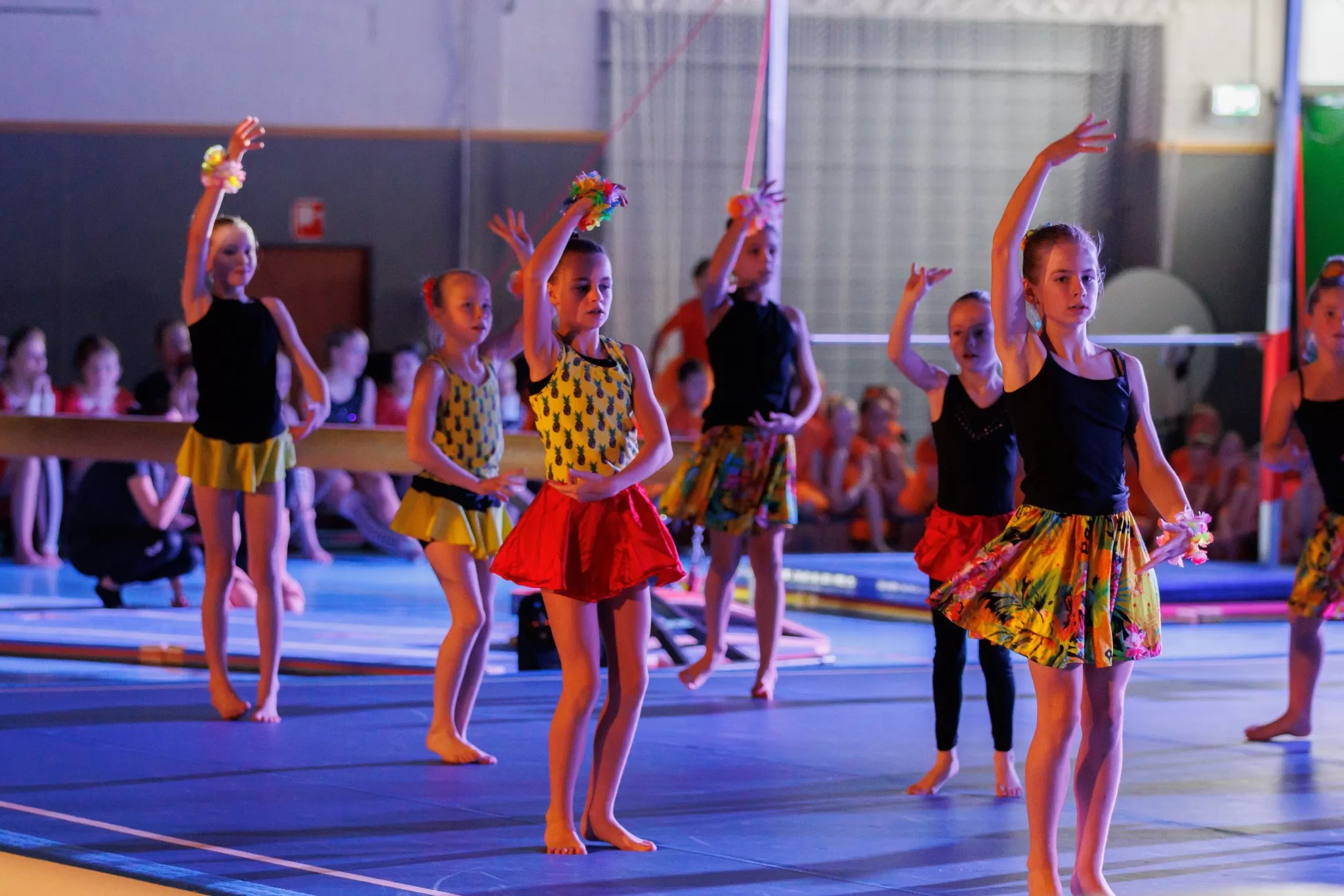 Na de spectaculaire opening door de topgroep acrogymnastiek stalen de jongste leden van het Nijntje Beweegdiploma de show met hun eerste geleerde bewegingen, zoals de koprol en springoefeningen. Ook alle groepen van kleuren-turnen lieten zien wat ze op hun niveau geleerd hebben, waaronder salto’s, flik flaks en balansoefeningen op vloer, balk en brug. Dat gold ook voor de acrogroepen.