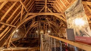 “Aan deze kerk wordt al duizend jaar getimmerd”, zegt Lisette. “De laatste restauratie betrof het orgel.” Nu zijn de restauraties klaar en is de kerk helemaal gereed om te worden bezichtigd. Elke maand is er een concert en jaarlijks een wisseltentoonstelling. In de lente- en zomermaanden kun je bovendien bijna elke middag naar boven klimmen om vanaf een speciaal aangelegde wandelbrug de indrukwekkende gewelven en de middeleeuwse bakstenen te zien.