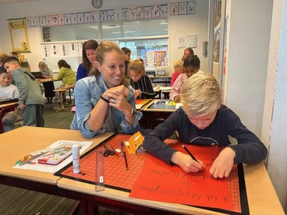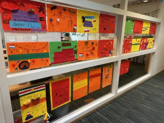 “Met dit project hebben we de verschillende moedertalen van de kinderen letterlijk in beeld gebracht. Op posters verzamelden we mooie zinnen, spreuken en versregels in al die talen. De kinderen vroegen hun ouders of andere familieleden naar teksten die voor hen een bijzondere betekenis hebben en in de klas praatten we samen over wat die woorden uitdrukken”, vertelt Boot.