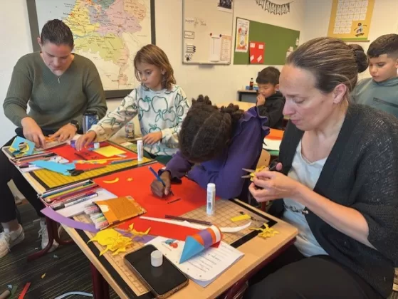 Woensdag werden de activiteiten in het kader van ‘De taal van je hart’ afgesloten bij de Deurnese school met een speciale bijeenkomst. “Ouders en zelfs een paar opa’s kwamen mee knutselen in de klas. Samen met hun (klein)kind maakten ze een creatief werkstuk waarin hun ‘hartstaal’ centraal stond. Het was een gezellige, warme middag vol mooie gesprekken en bijzondere verbindingen tussen thuis en school”, aldus de leerkracht van De Piramide.