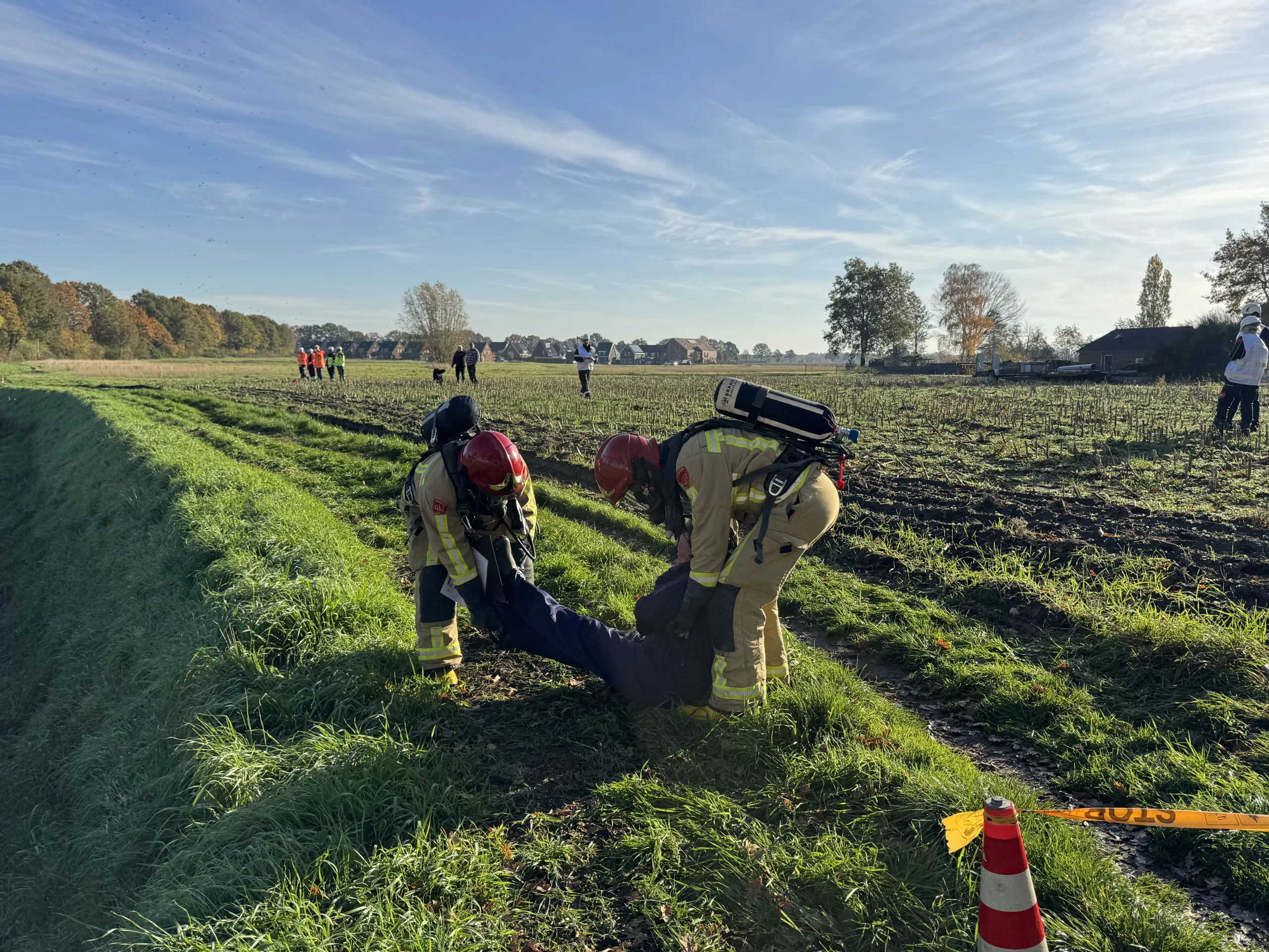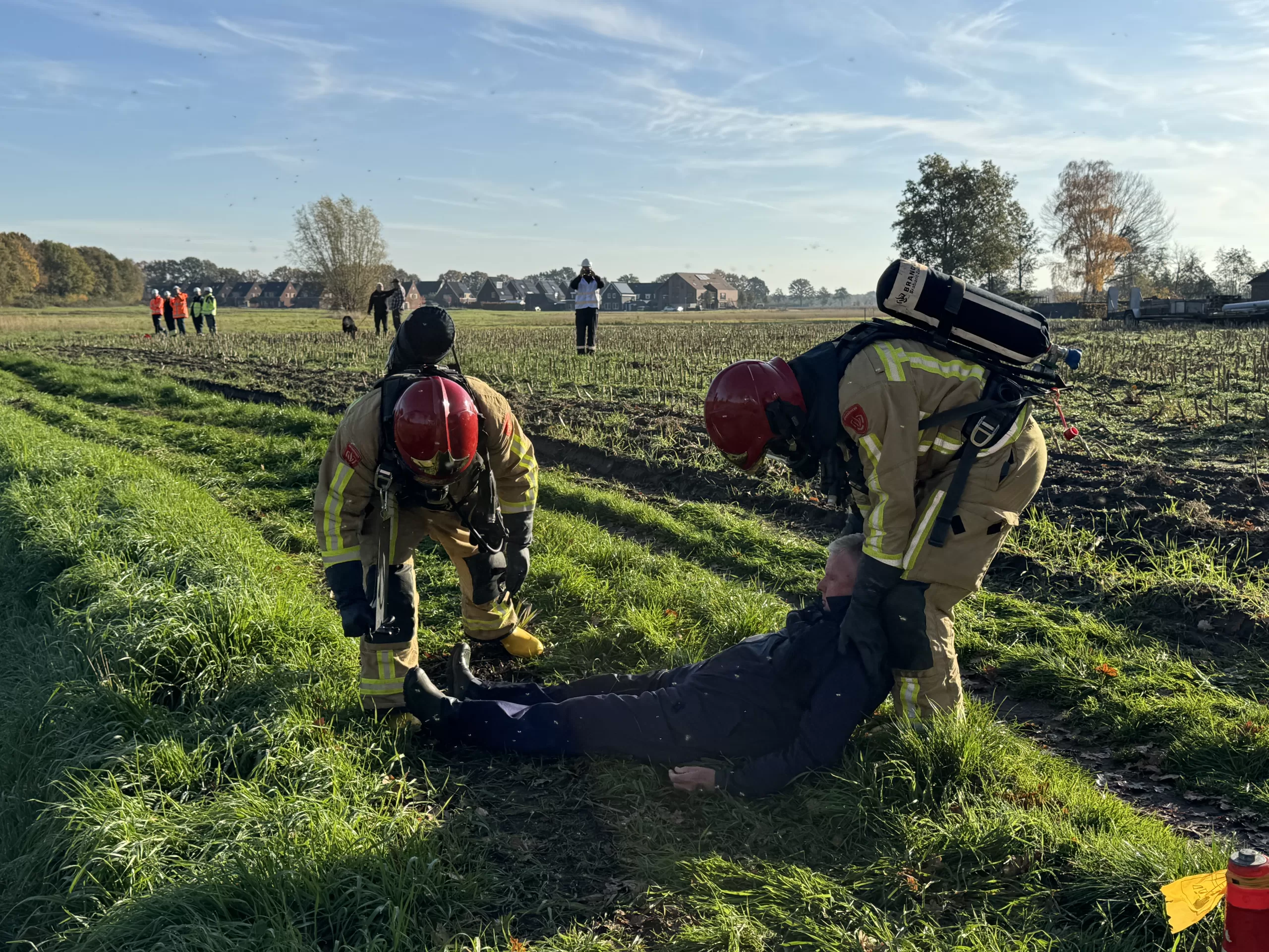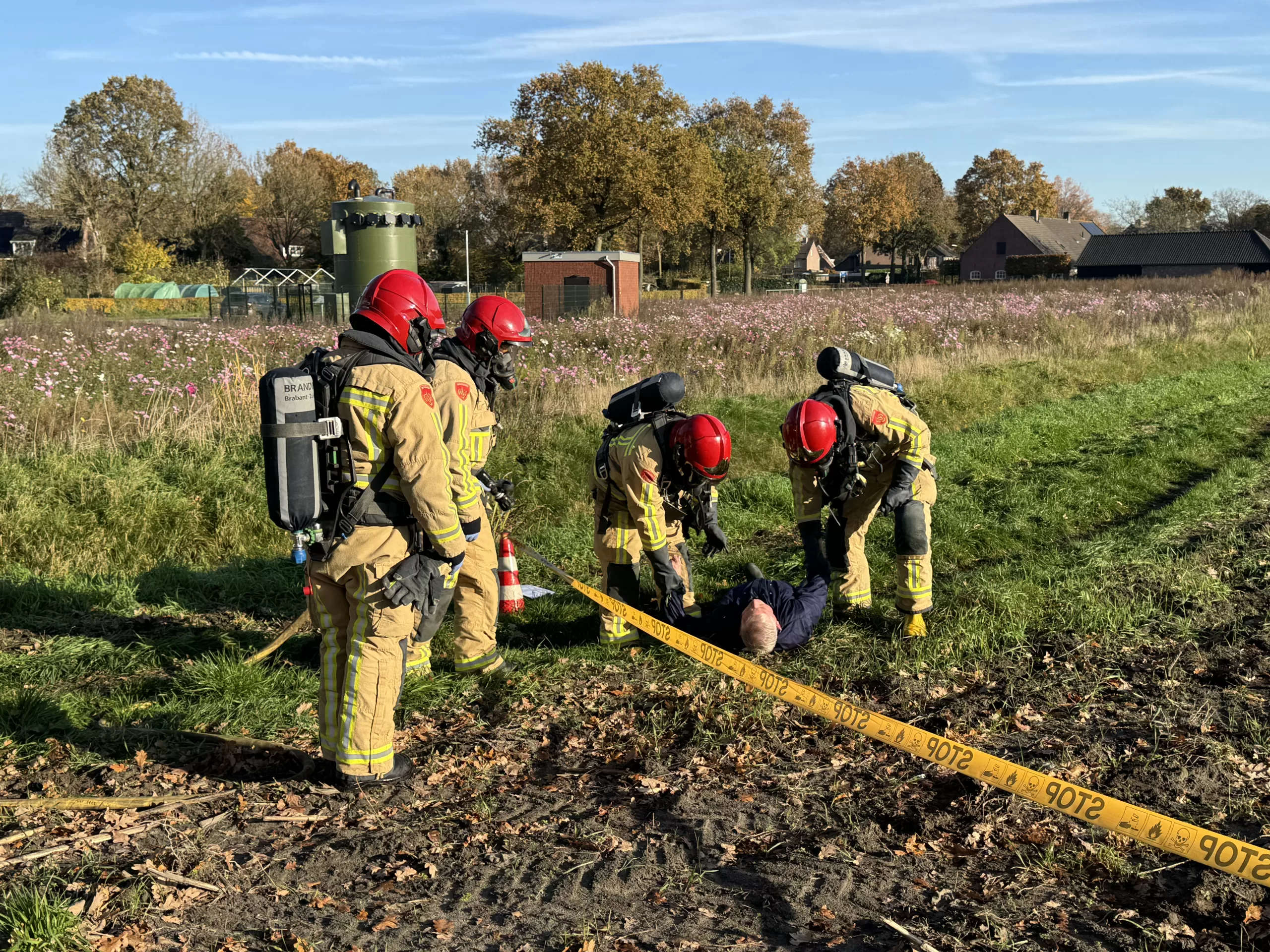 Voor wie vrijdagochtend in de buurt van de Fabrieksloop aan de rand van Bakel voorbijkwam, leek het alsof er net een grote ramp was gebeurd. Brandweerlieden liepen rond met gasmaskers op en aan de oever van de sloot lag een bewusteloze man. Gelukkig ging het om een oefening van diverse hulpdiensten, die trainden aan de hand van een scenario waarbij nafta was vrijgekomen uit een ondergrondse pijpleiding.