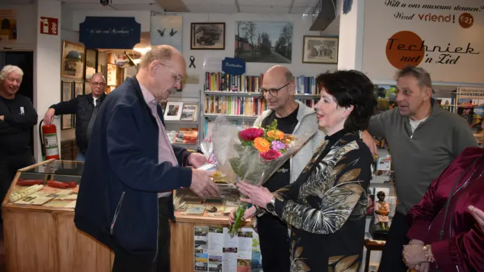 “Een mooie mijlpaal die benadrukt hoezeer het museum leeft in het dorp en ver daarbuiten” zegt voorzitter Ad Cosijn. Hij ontving Mieke Swinkels uit Someren als 70.000ste bezoeker en overhandigde haar een bos bloemen.