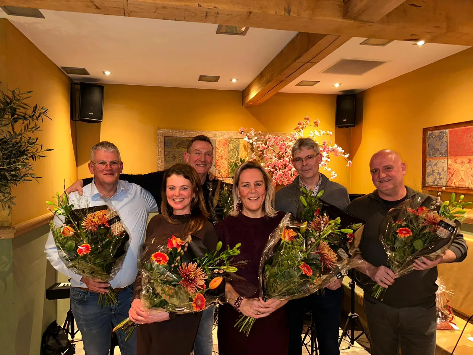 Niet alleen Van den Heuvel en Ahout werden tijdens de avond door de organisatie bedankt voor hun inzet, maar ook Maartje Raeskin, Heidi Geven, Joost Manders en Joost Tielens werden in het zonnetje gezet vanwege hun waardevolle bijdrage aan de vereniging.