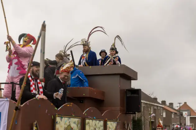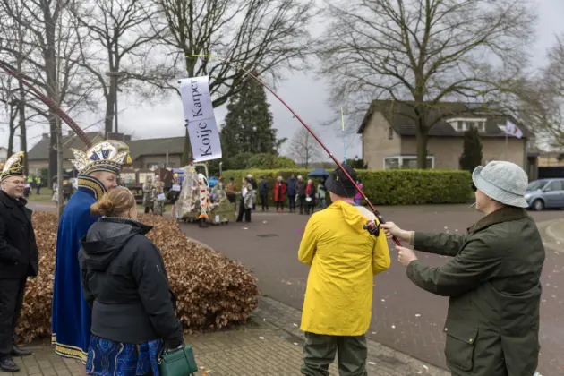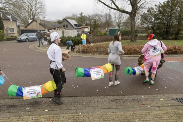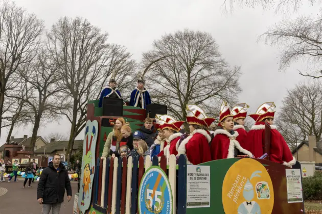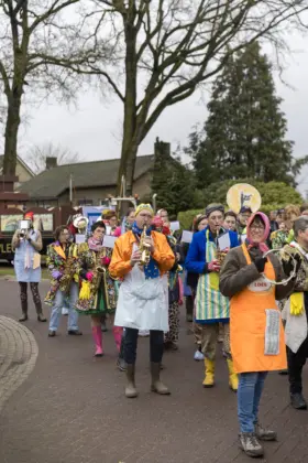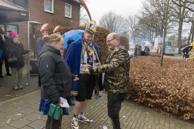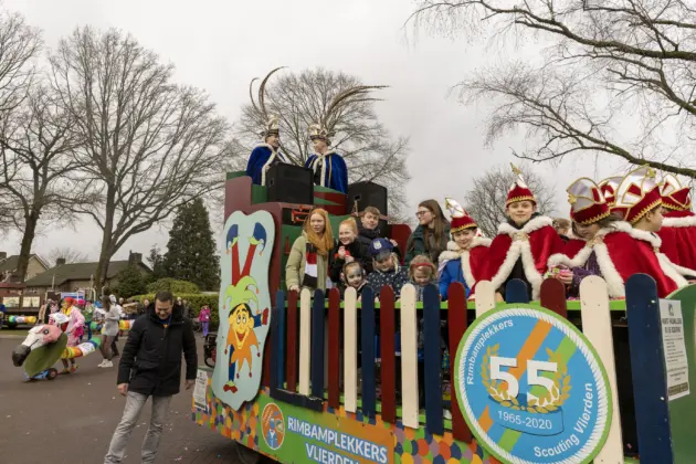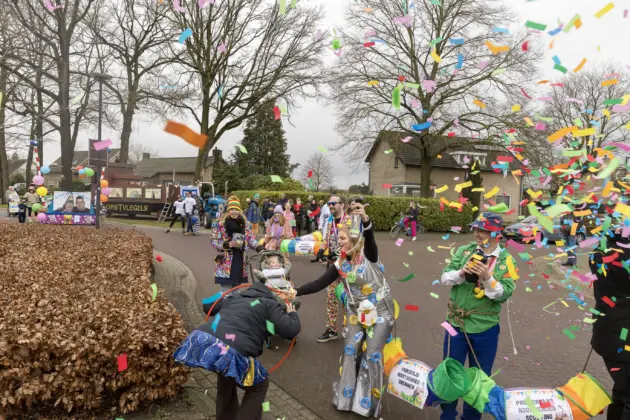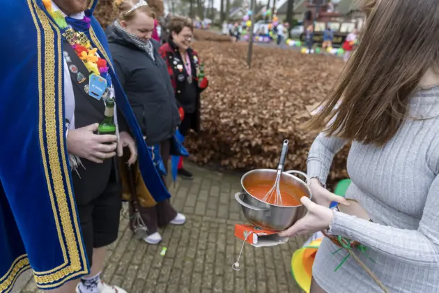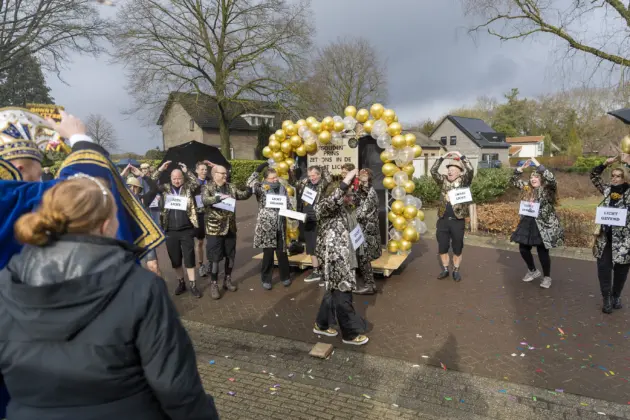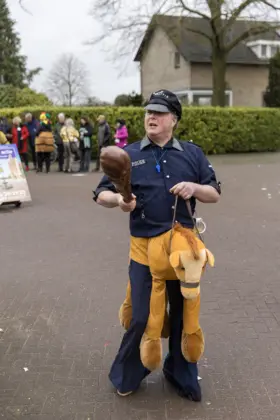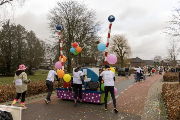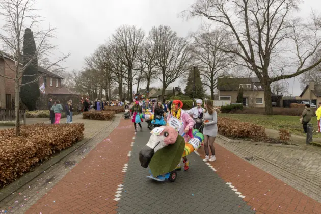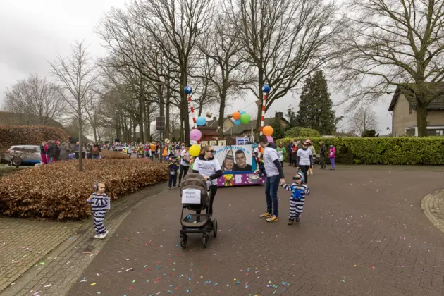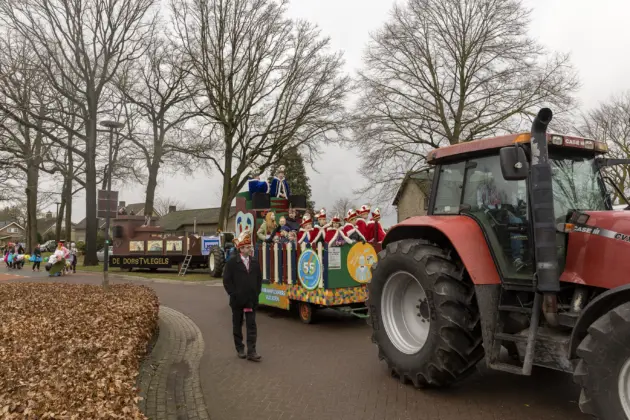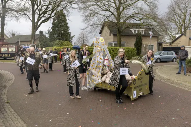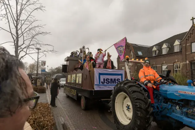 Een stevige hagelbui kon de toeschouwers bij de optocht in Vlierden er maandagmiddag niet van weerhouden de voorbijtrekkende stoet te aanschouwen. Ook de deelnemers lieten zich niet tegenhouden door de zo nu en dan barre weersomstandigheden. Prins ‘nooit genoeg’ Jos had het ondanks zijn kenmerkende korte broek warm genoeg dankzij een flesje bier, maar ook onder andere een tomatensoepje waar hij op werd getrakteerd.