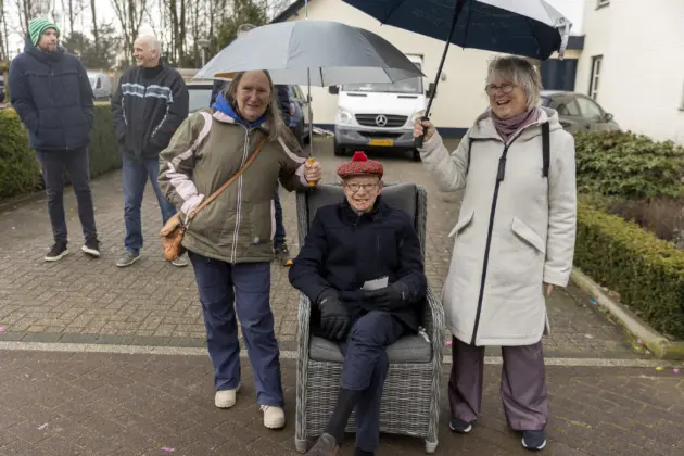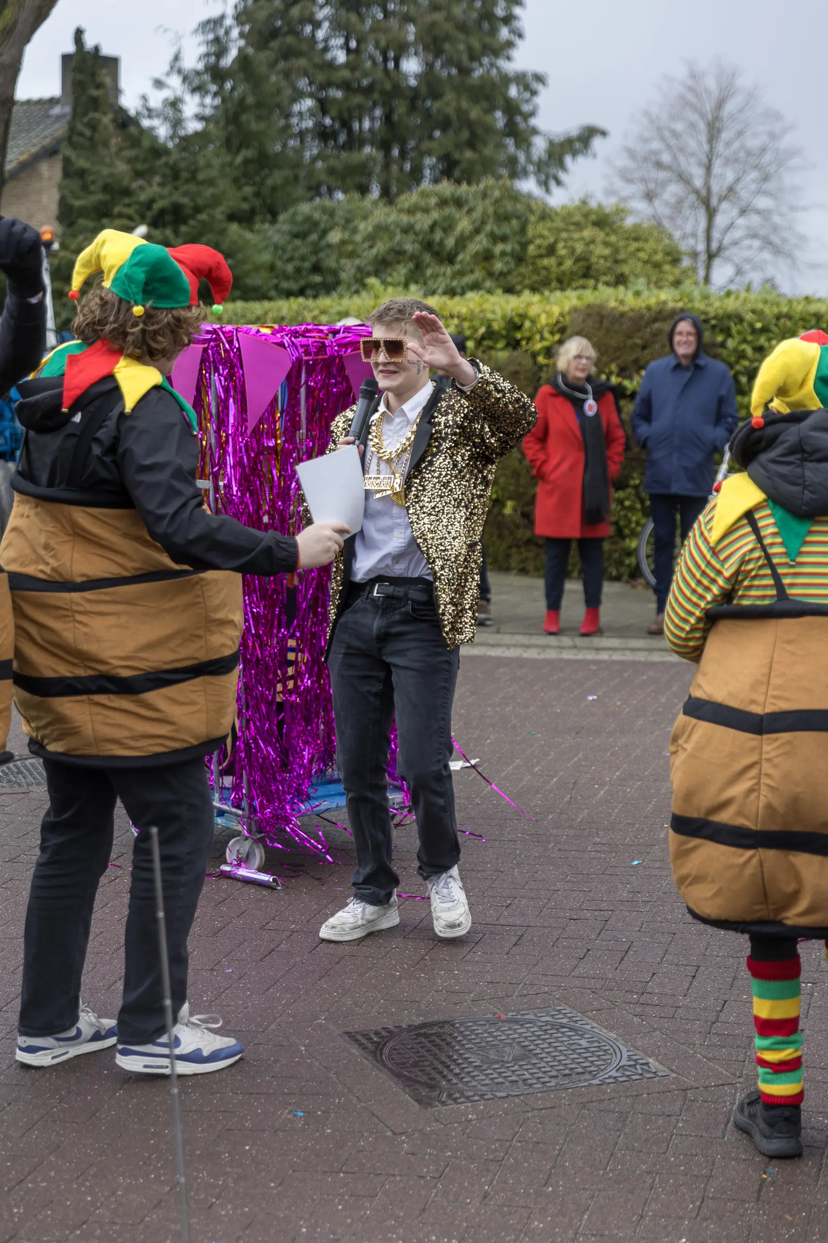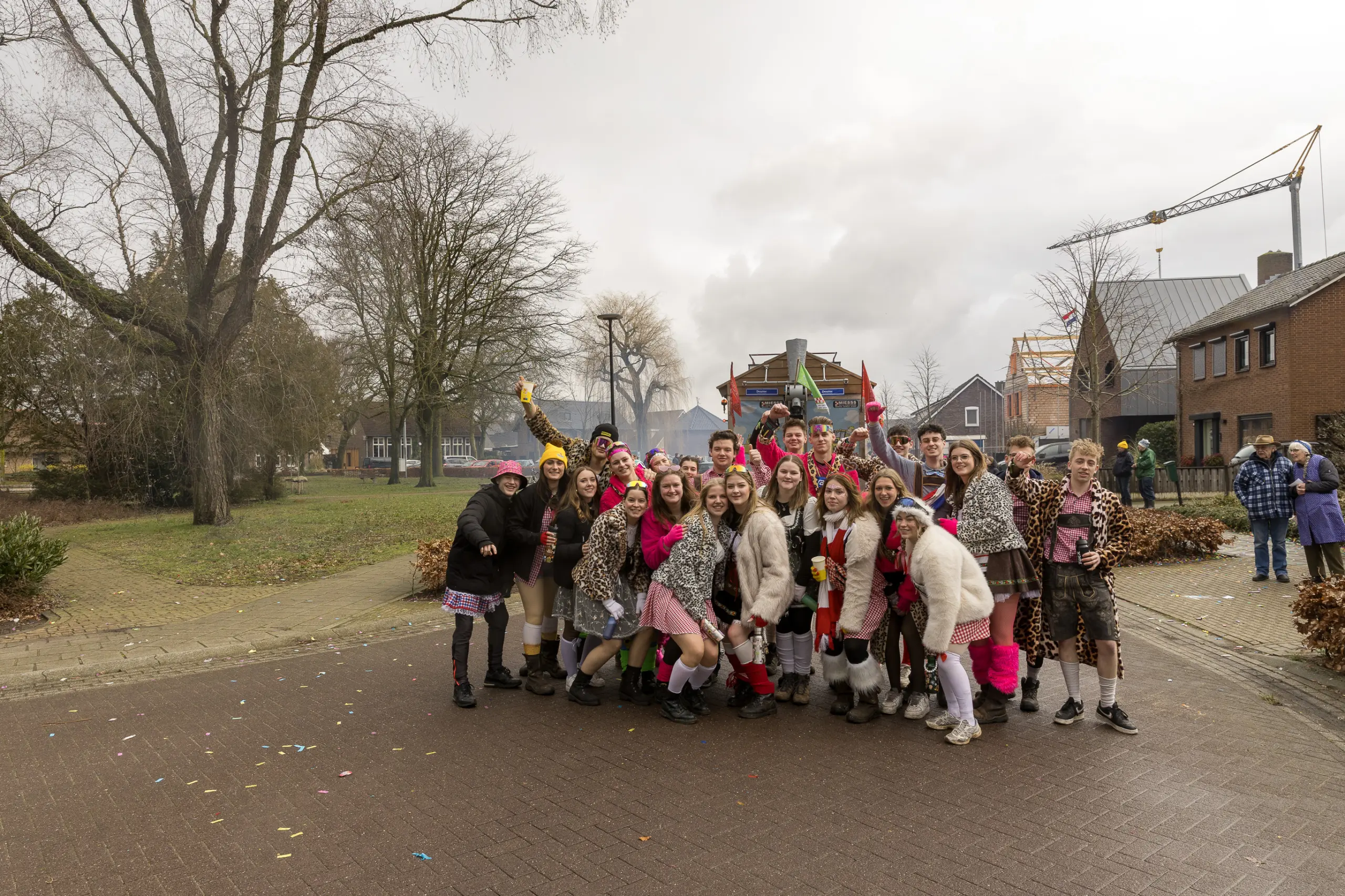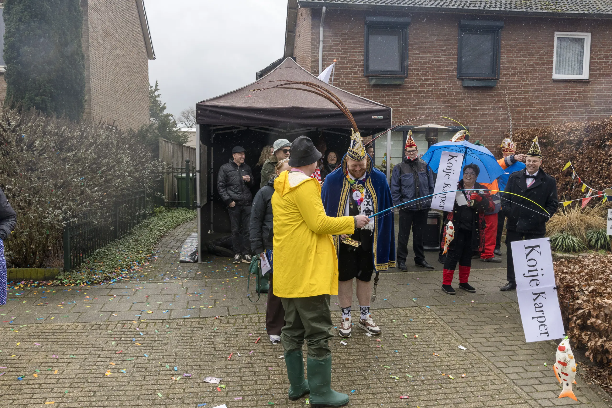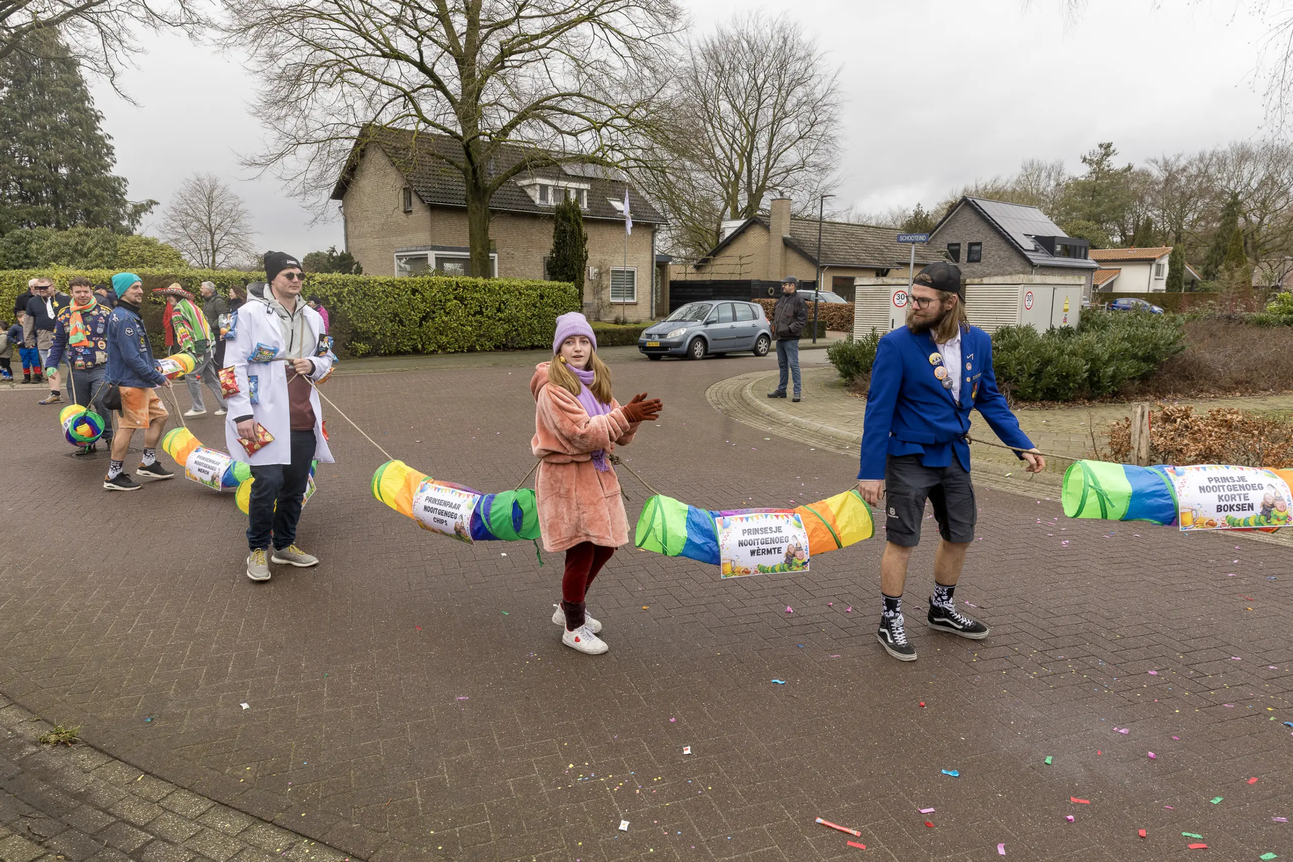 Een stevige hagelbui kon de toeschouwers bij de optocht in Vlierden er maandagmiddag niet van weerhouden de voorbijtrekkende stoet te aanschouwen. Ook de deelnemers lieten zich niet tegenhouden door de zo nu en dan barre weersomstandigheden. Prins ‘nooit genoeg’ Jos had het ondanks zijn kenmerkende korte broek warm genoeg dankzij een flesje bier, maar ook onder andere een tomatensoepje waar hij op werd getrakteerd.