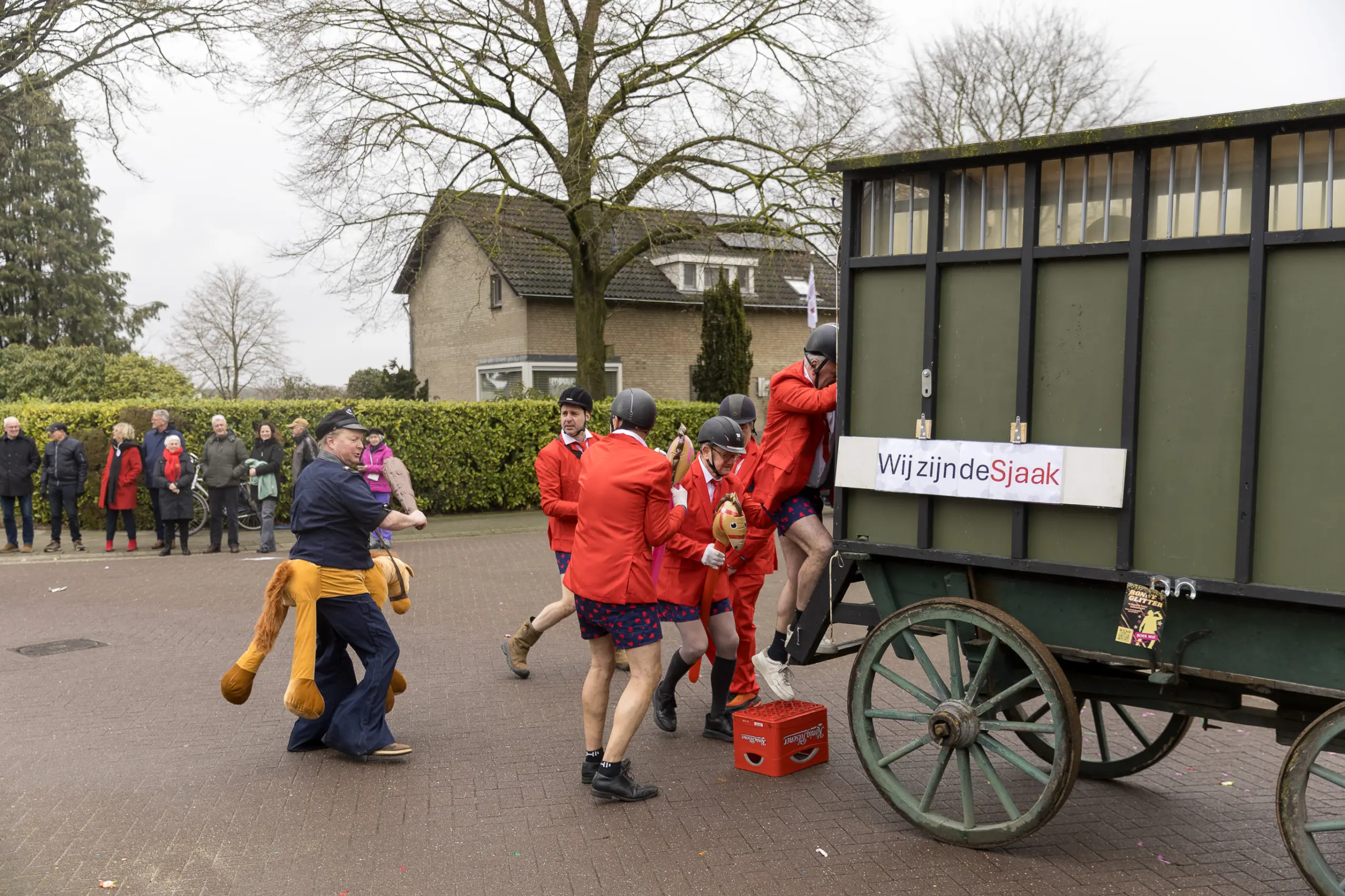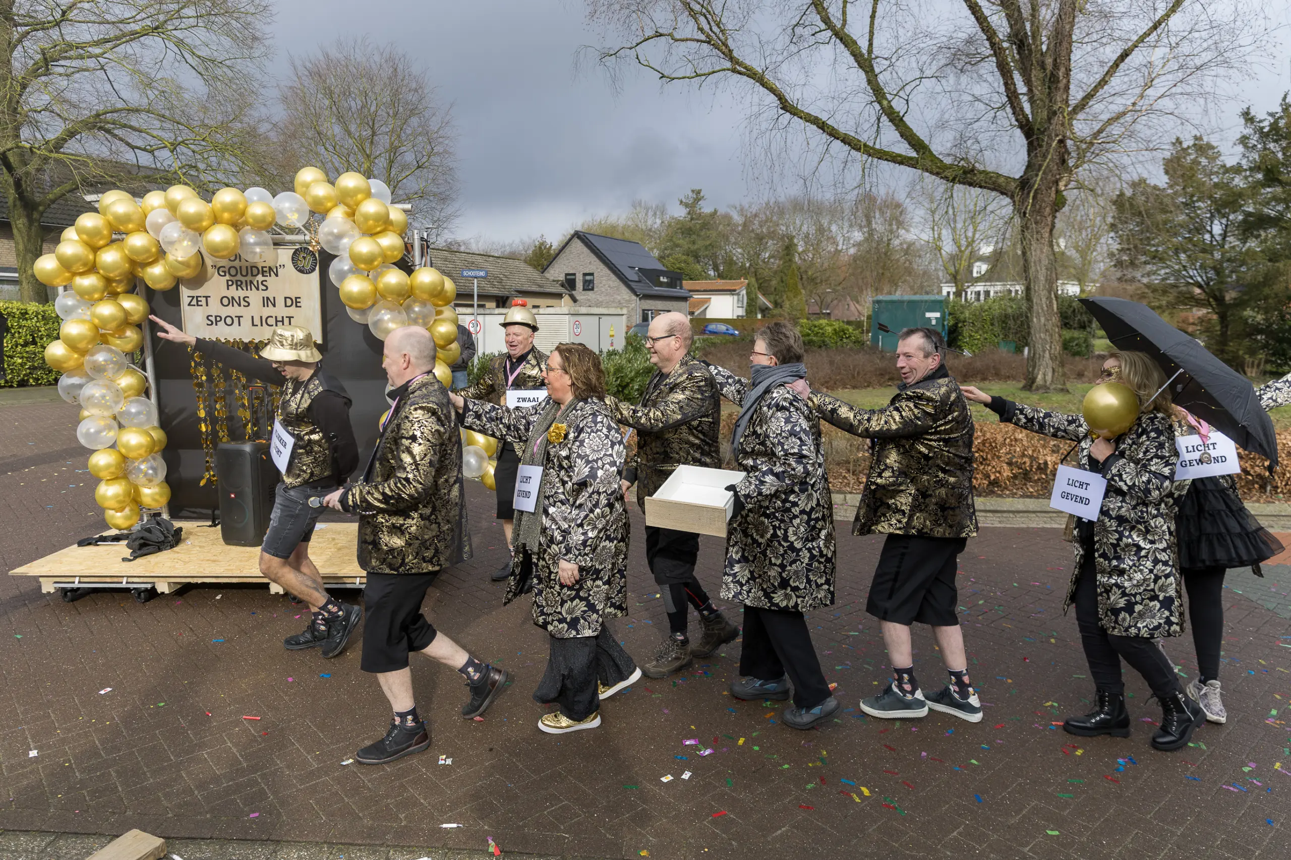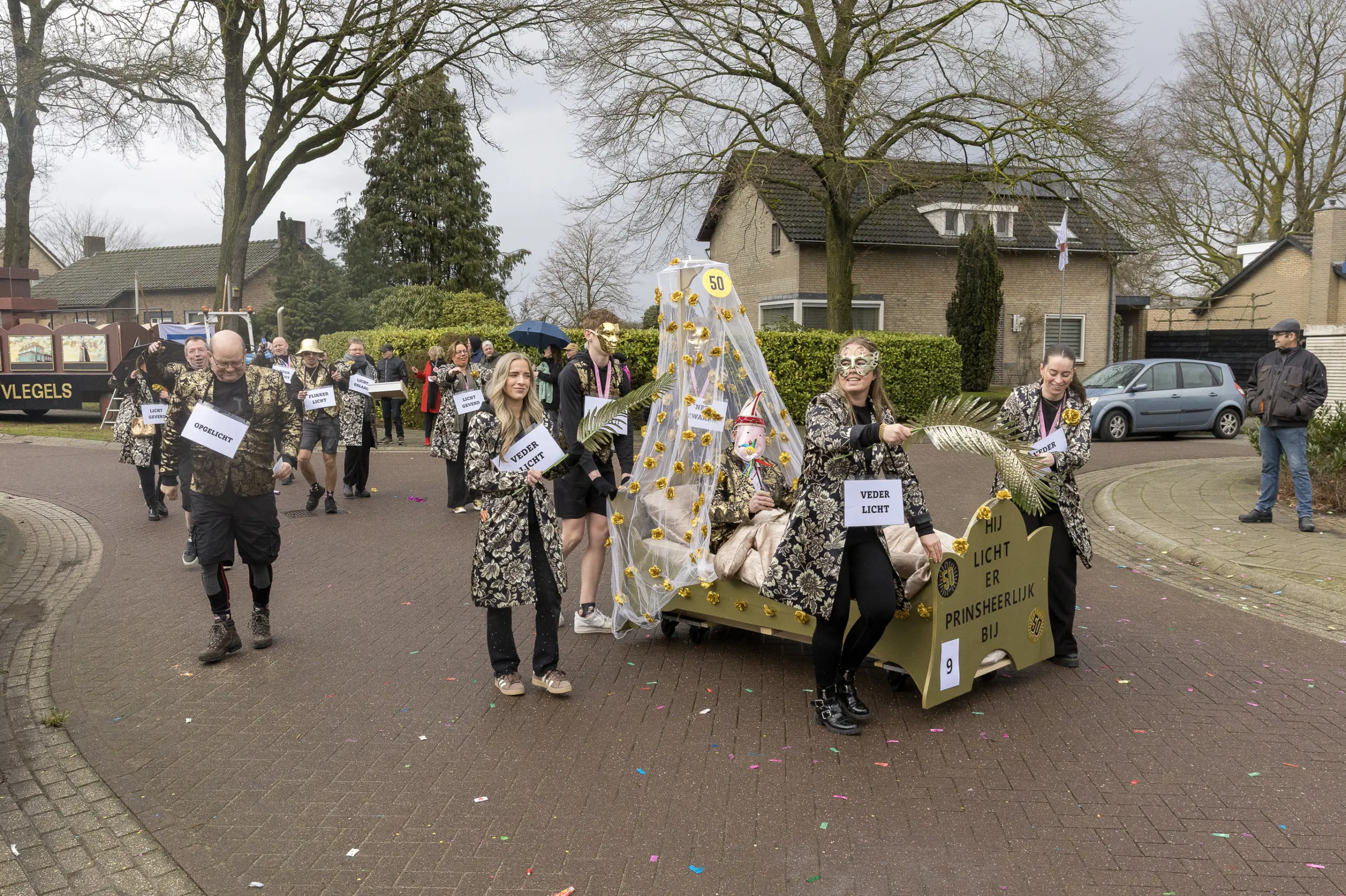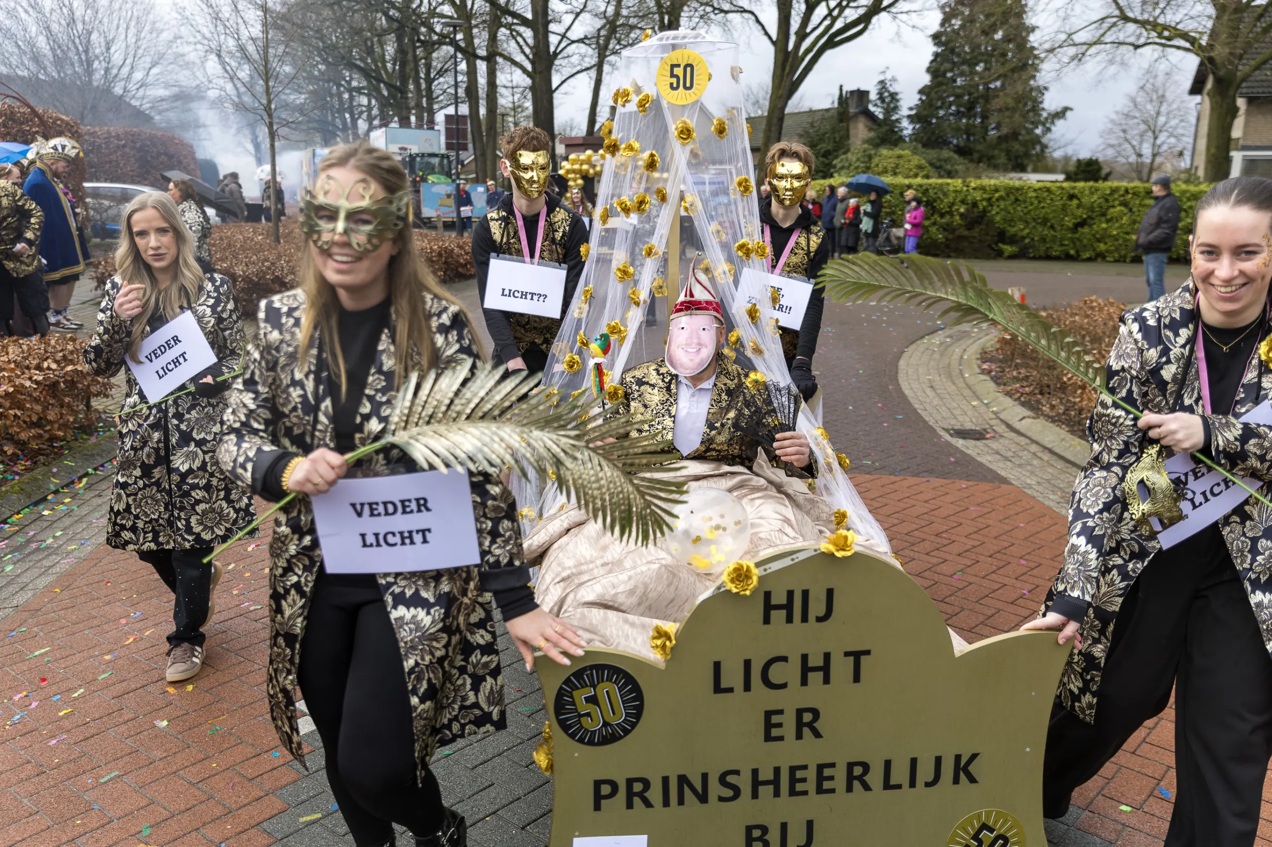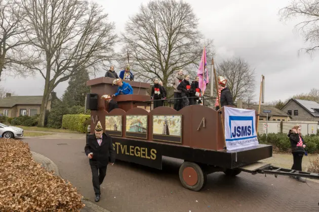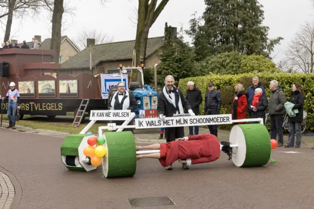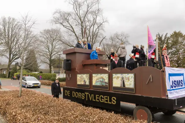 Ook veel van de andere deelnemers aan de optocht gaven op hun eigen manier een knipoog naar de vijftigste Prins van het Dorstvlegelrijk. Vanwege zijn werk als monteur en installateur bij Expert kon natuurlijk de witgoedkoerier niet uitblijven en brachten de echte vrienden van bolle Jos, inclusief zwart balkje, een bezoek aan de Vlierdense hoogheid.