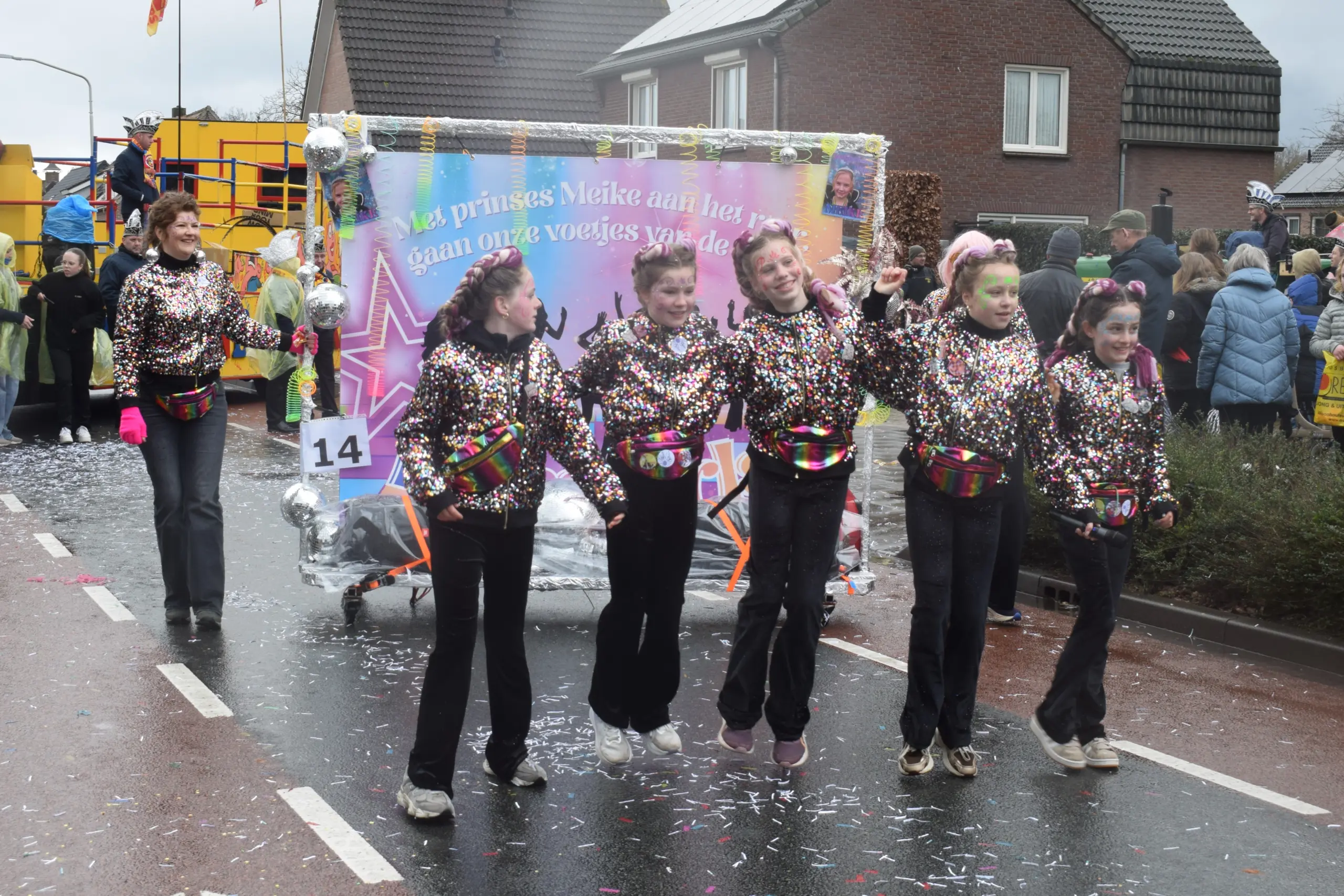 Ook was er in sprookjessfeer een winters tafereel te zien op een wagen, waarmee werd verwezen naar de vorst die dit jaar Prins werd. De in het bont geklede dames kregen het hierbij, ondanks de verfrissende bui die net voorbij getrokken was, plotseling wel erg heet.