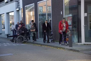 Daarbij benadrukt Manders dat vrijdag bij de wandeling de ‘duwers’ een stuk jonger waren dan in de dagelijkse praktijk: “Dan is meestal de echtgenoot of echtgenote de ‘duwer’. Met een rollator of rolstoel is het soms echt ondoenlijk om in ons centrum te vertoeven, omdat stoepen erg ongelijk zijn of oversteken niet te nemen zijn als je bent aangewezen op hulpmiddelen.