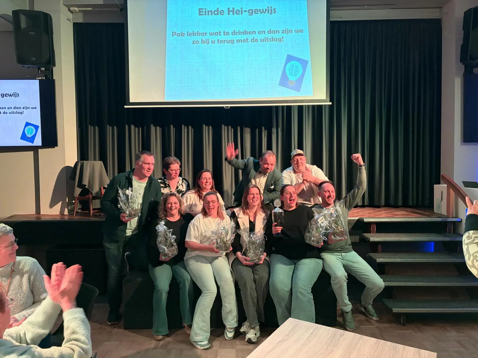 Maar liefst twintig fanatieke teams gingen afgelopen zaterdag de strijd aan om de felbegeerde titel ‘De Slimste van de Hei’ te veroveren. De competitie in gemeenschapshuis ’t Hofke van Marijke in Deurne was scherp en de vragen soms verrassend pittig. Uiteindelijk kwam na een spannende eindronde één team onbetwist als winnaar uit de bus: ‘Bij elkaar geraapt zooitje’. Deze groep mocht zich aan het einde van de avond officieel kronen tot de ‘De Slimste van de Hei’.