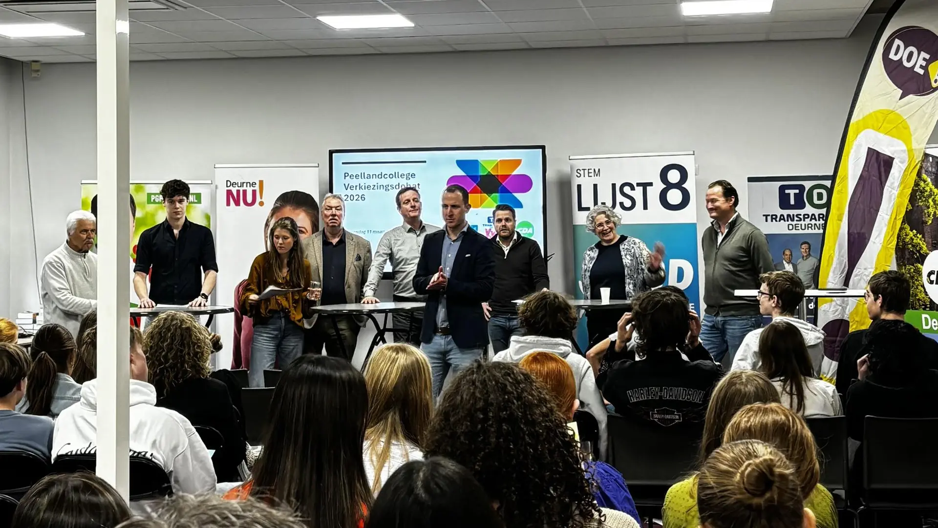 Bij het verkiezingsdebat dat woensdag op het Peellandcollege in Deurne werd gehouden, is de 18-jarige Jelle Schlösser van de VVD uit de bus gekomen als winnaar. De partij had tactisch niet de lijsttrekker, maar de jonge nummer 6 van de kandidatenlijst en tegelijkertijd oud-leerling van de school ingezet. Dat bleek een gouden greep, want met maar liefst 53 procent van de stemmen werd hij eerste bij het debat. Het publiek bestond uit bovenbouwleerlingen van het Peellandcollege, die ook actief betrokken werden bij de discussie.