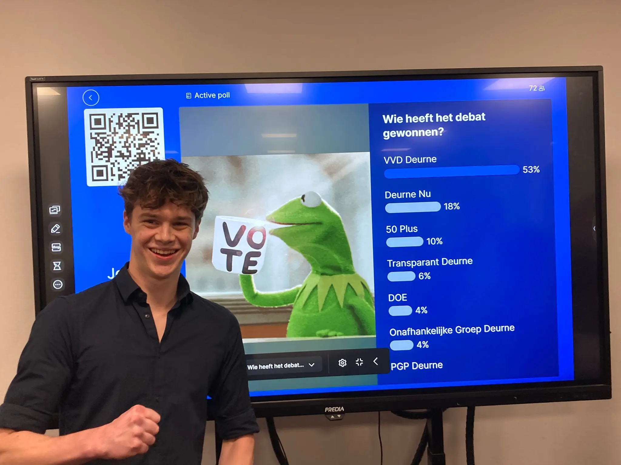 De tweede plaats werd met 18 procent behaald door de 26-jarige lijsttrekker van DeurneNU: Janke van Dijk. Opvallend was dat 50Plus met 10 procent van de stemmen derde werd bij het debat van het Peellandcollege. Een teken dat die partij dus blijkbaar niet alleen raakvlakken heeft met kiezers van 50 jaar en ouder.