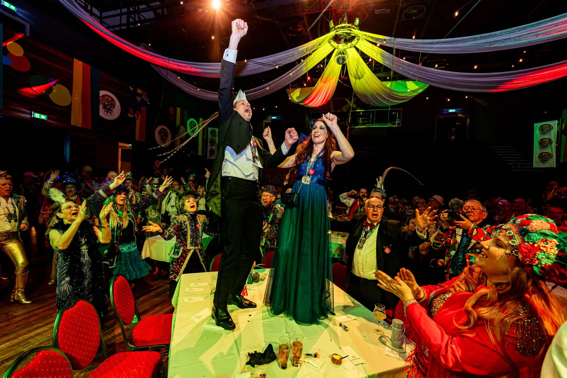 Vervolgens zorgden amusementsgroep Jin Zonder Tonic en Berry Knapen voor de nodige humor en interactie. Daarna was het tijd voor het hoofdgerecht én een muzikaal hoogtepunt: De Raad van Elf bracht met hun carnavalskrakers de zaal in opperste feeststemming. De middag werd voortgezet door de Duitse schlagerzanger Dennie Christian, die het publiek wist te raken met bekende hits als ‘Rosamunde’ en ‘Ein Festival der Liebe’.