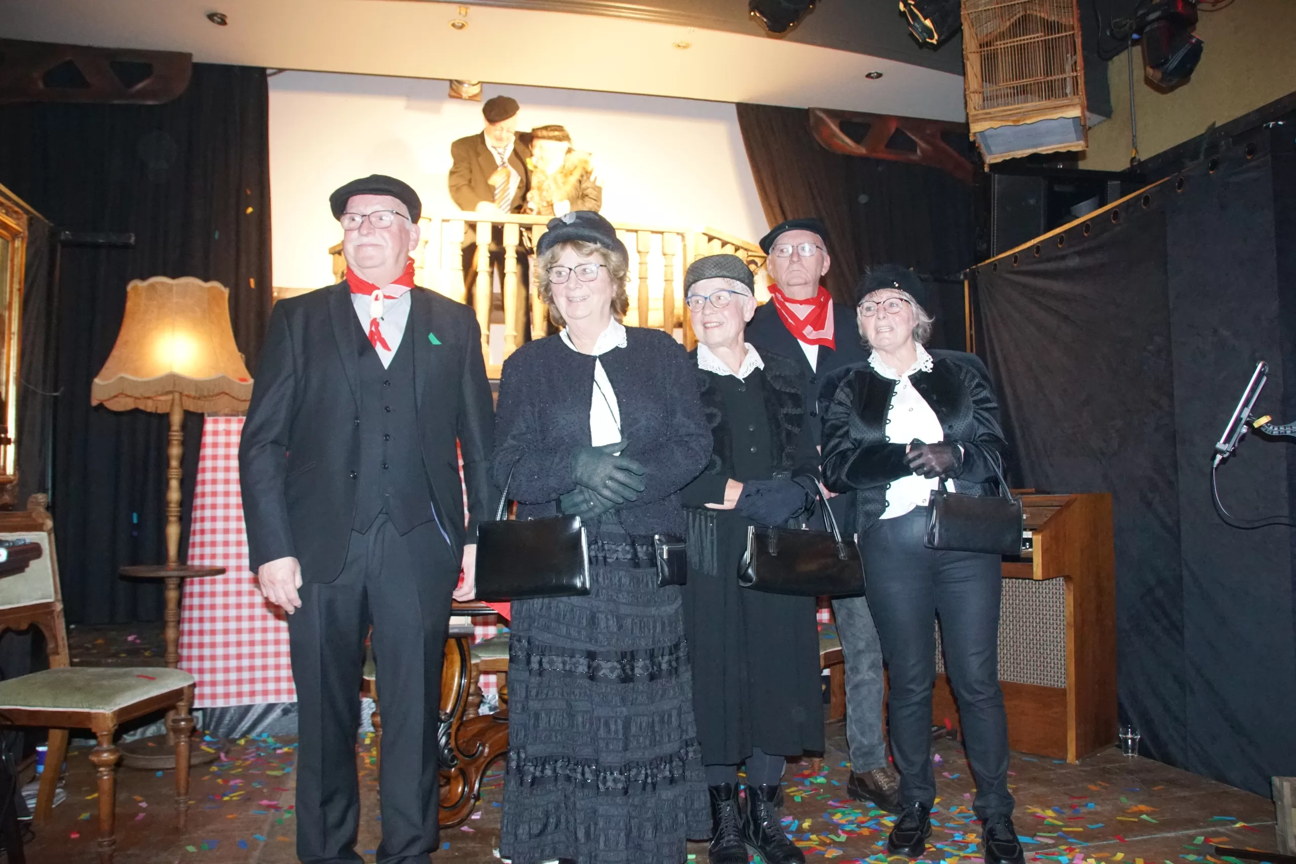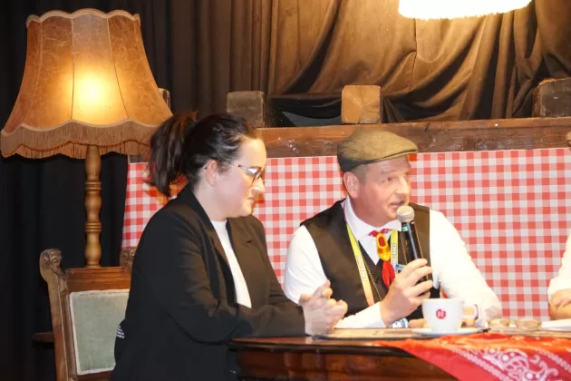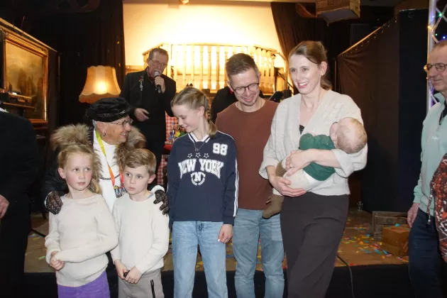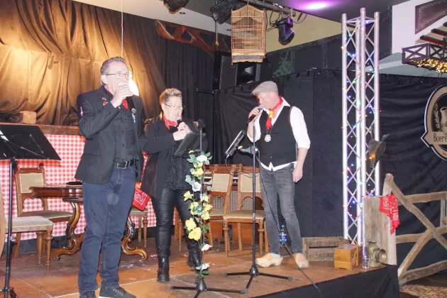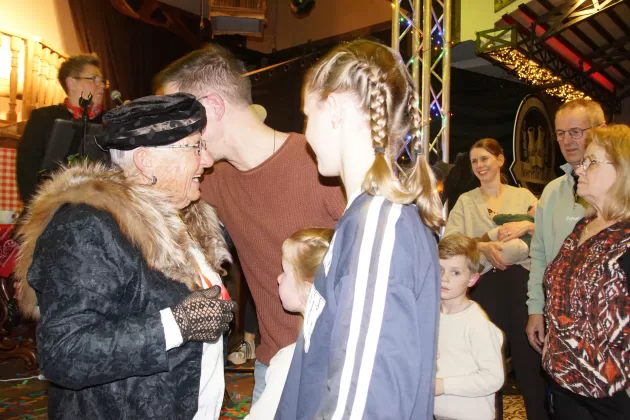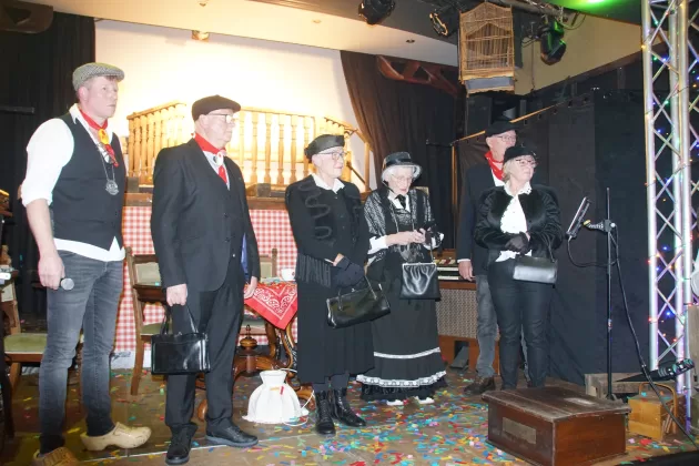 Toen was het tijd om de familie van het toekomstige boerenbruidspaar voor te stellen en werd per tractor de boerentrien naar binnen gereden. De spanning bij alle aanwezigen steeg toen het grote moment daar was en Wies en Thea werden onthuld als Wieske Flodder en Frutje Rommeltes; het boerenbruidspaar van 2026.