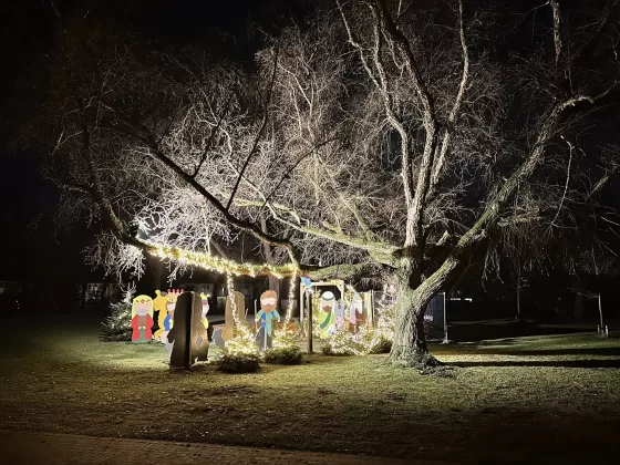 Het Tuinpad Park in Deurne is sinds zaterdagavond weer helemaal in de kerstsfeer dankzij de inzet van de vrijwilligers van Stichting ’t Hart. Nog tot en met volgende week dinsdag kunnen bezoekers een kijkje komen nemen bij onder meer de kerststal en de verlichte kerstboom die zijn opgebouwd.