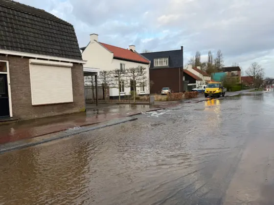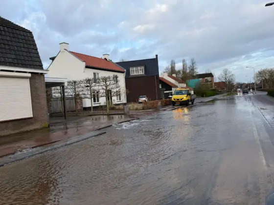 Door een gesprongen waterleiding heeft de Zeilbergsestraat zaterdagochtend rond 08.15 uur enige tijd blank gestaan. Door de druk van het water kwamen ook enkele stoeptegels omhoog.